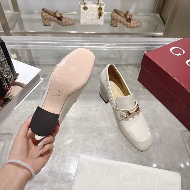 / 长期有货 Gucci 古奇 浅口乐福鞋巧妙运用圆形鞋头等设计时尚风范 面料:进口软牛漆皮和进口羊皮 内里:垫脚 进口羊皮 跟高:5.5 码数:35 42码 备注