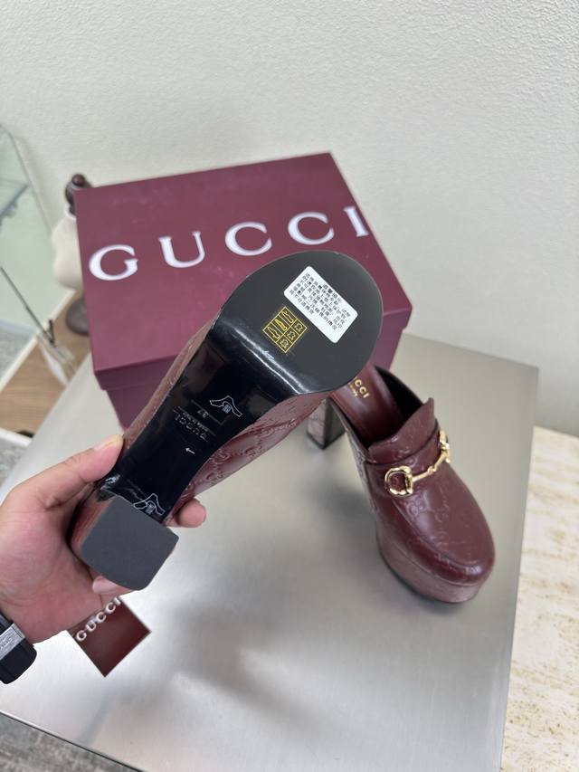 面料包裹前水台 后跟 Gucci DDD 新防水台高跟 凉鞋 DDD 跟高 13Cm 前水台4.5Cm DDD 酒红色 牛皮 压印Logo DDD 走鞋款秀 古驰 恨天高内置水台后空凉鞋 DDD 时尚的品牌Logo持加,具有超辨高识度各品大争牌恐先推后出超系跟高列Gucci不也落伍 Guccl巴黎时装秀场款 DDD 此系列演绎全新时尚魅力延续超高跟设计,深得海外知名博主青睐千万粉丝博主倾情演绎,畅销海内外国内已经断货,顶级版本糖果色配色,每个颜色都是绝美知知,共13个颜色供选 DDD 面鞋:进口布纹 牛皮