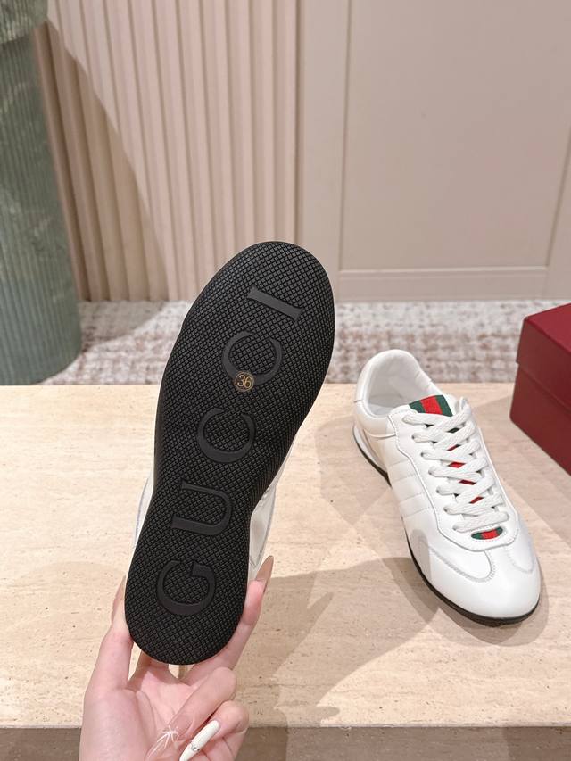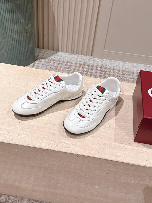 顶级品质:情侣款 : DDD 2025早秋新款Gucci 古驰Shift系列情侣款运动鞋系带休闲德训鞋 DDD Gucci Shift系列全新上市,轻盈设计焕新诠释运动风尚。利落廓形更添自在本色,行动间彰显精致质感。织带细节宛如一道延绵不绝的饰带贯穿于整个设计,侧边缝线细节增添点睛之笔。 DDD 鞋面:水洗效果牛皮 定制麂皮 DDD 内里垫脚:羊皮 DDD 鞋底:开模双色Tpu大底 DDD 码数:女35-39 40.41定做不退换 DDD 男40-44 39 45定做不退换 DDD