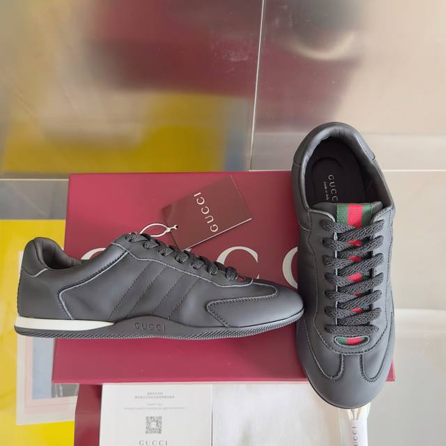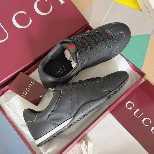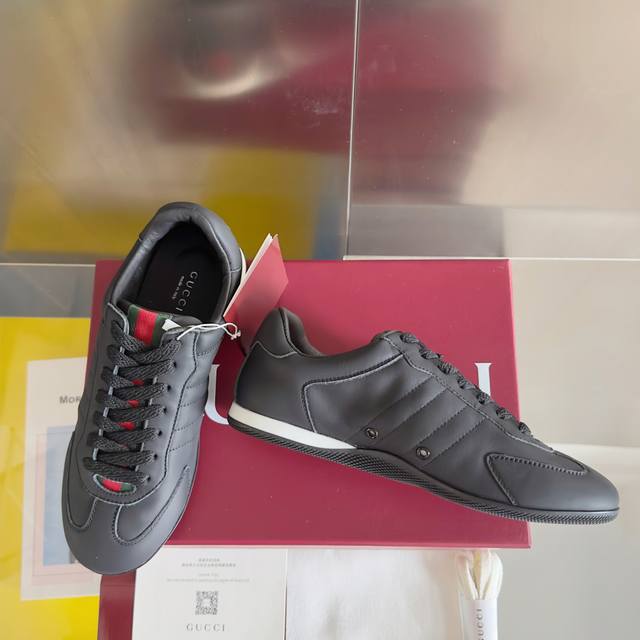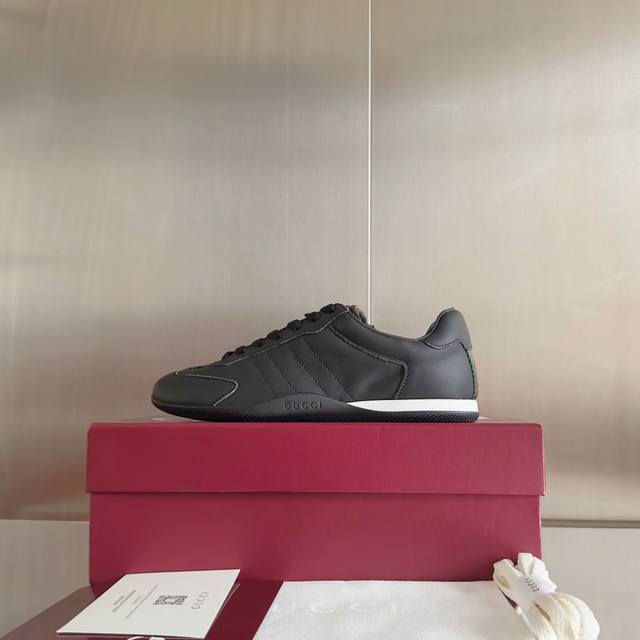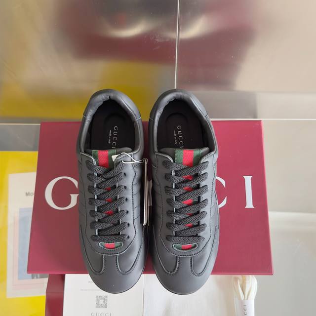 顶级版本:情侣款 Gucci古驰Shift系列 情侣款 复古 德训鞋 休闲 运动鞋 原版购入开发 做货 Gucci Shift系列全新上市,轻盈设计焕新诠释运动风尚。利落廓形更添自在本色,行动间彰显精致质感。织带细节宛如一道延绵不绝的饰带贯穿于整个设计,侧边缝线细节增添点睛之笔 配送专柜精美包装 面料: 原版定制进口头层牛皮 内里: 原版定制柔软羊皮里 大底: 原版开模防滑Tpu材质 底厚: 2Cm Size: 女款35-41 男款39-45