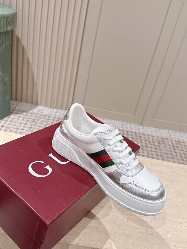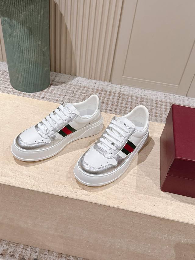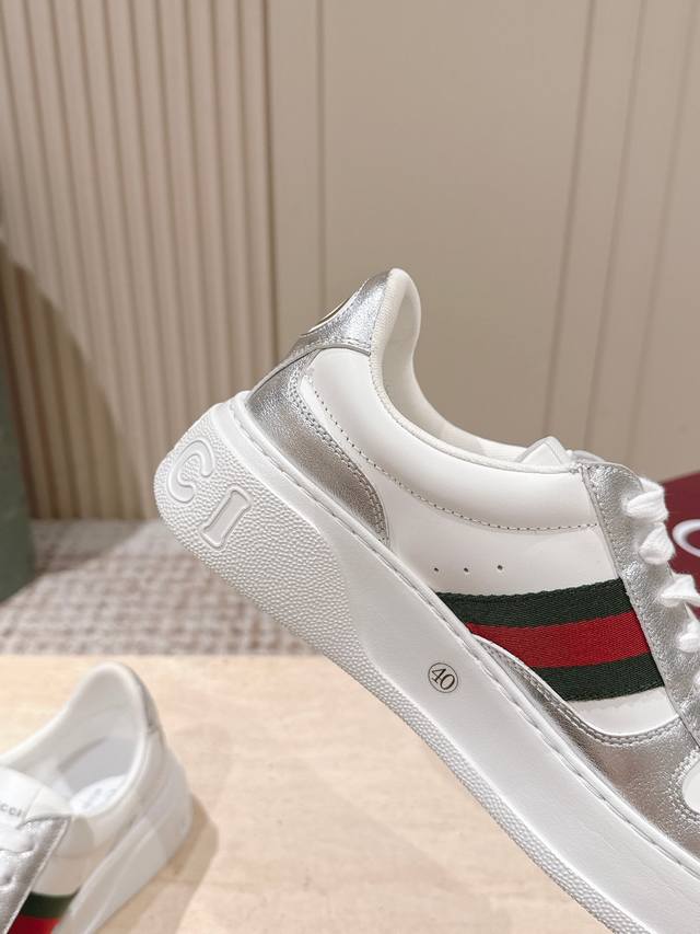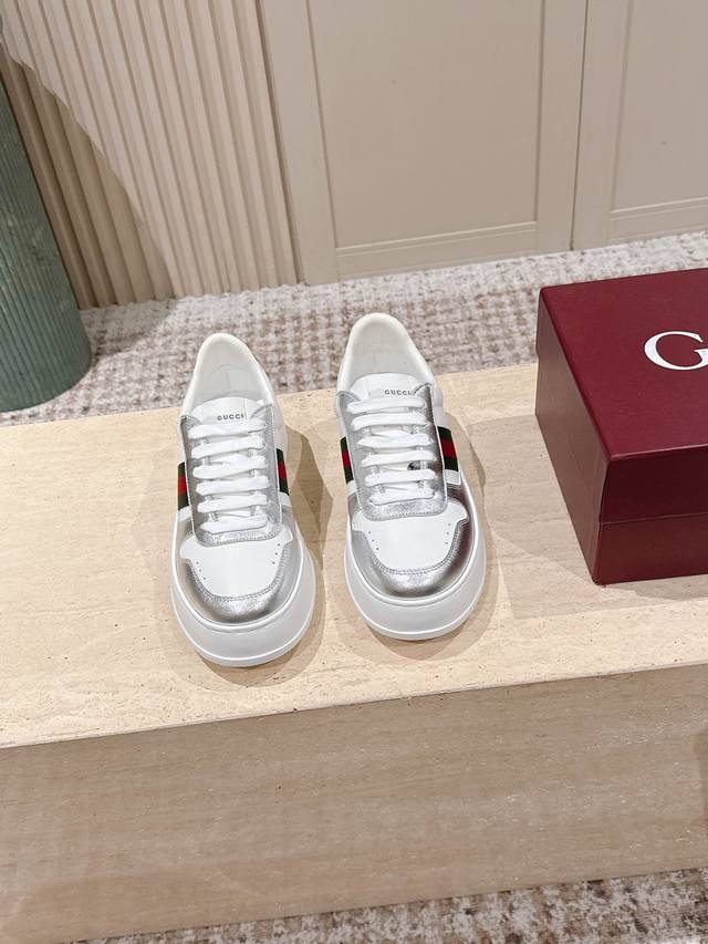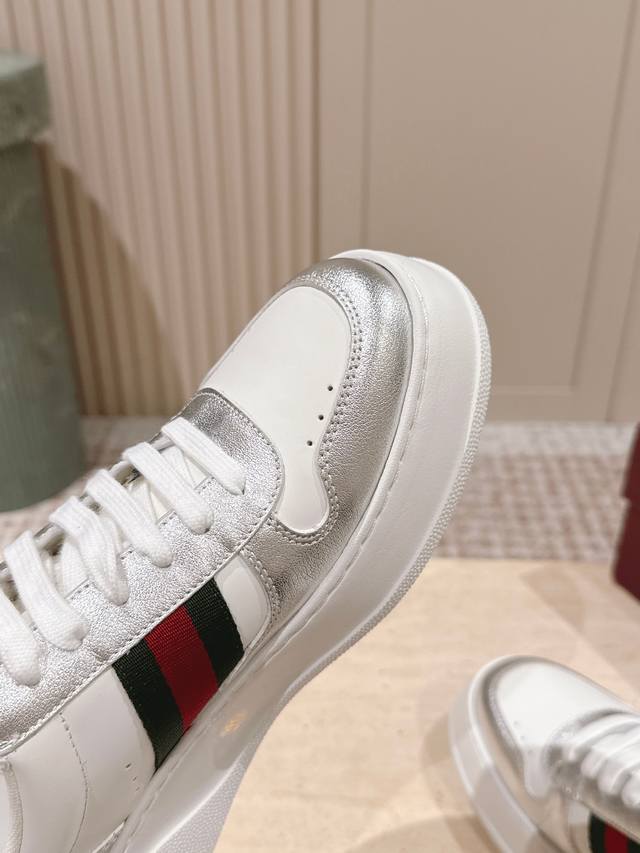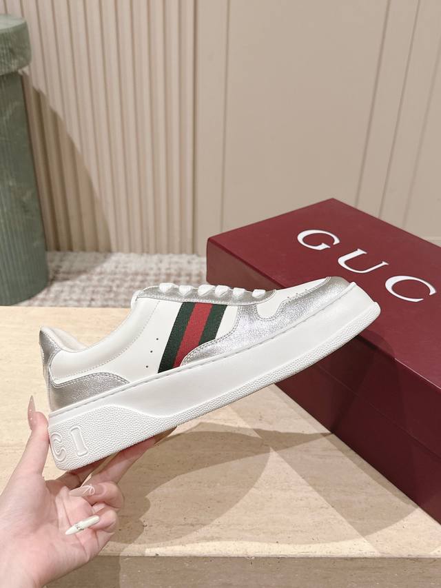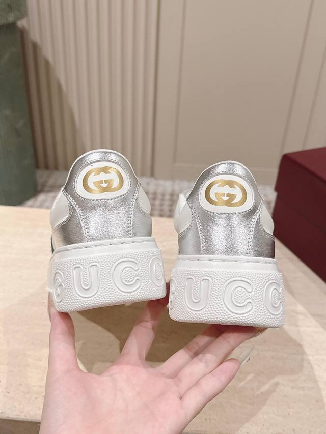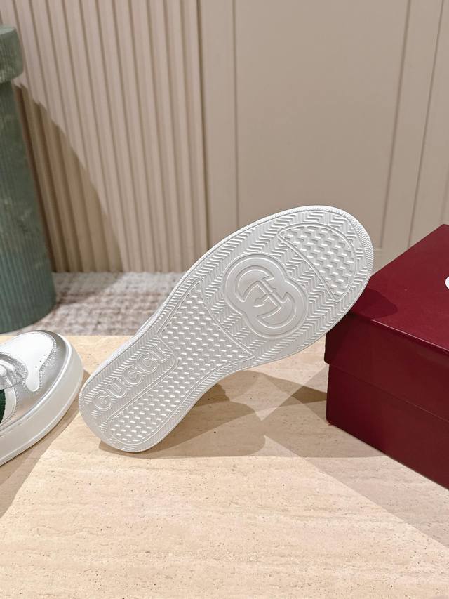 / 顶级版本:情侣款 :Gucci 新色小白鞋 无敌好看又好穿的饼干鞋 很百搭又超级轻 复古感十足搭配厚底 谁都爱~ 面料: 原版定制进口牛皮 冲孔工艺。内里: 水