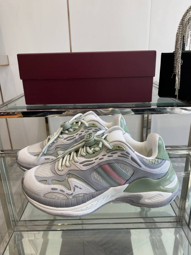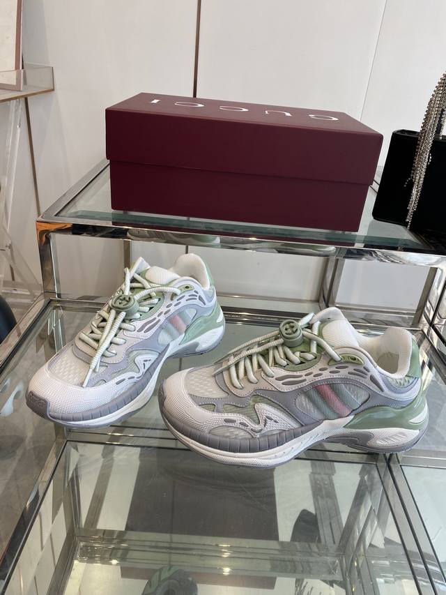 顶级版本 女 男640Gucci 2.0 最新情侣款老爹鞋 运动鞋 这款运动跑鞋又将是一代绝唱 采用科技网面 3D打印技术 Eva减震中底 内置碳板 Tpu组合大底 约4Cm增高 厚底完美呈展姿态 脚感超级无敌好 运动舒适 休闲百搭 码数:35-45 女40 男45订做