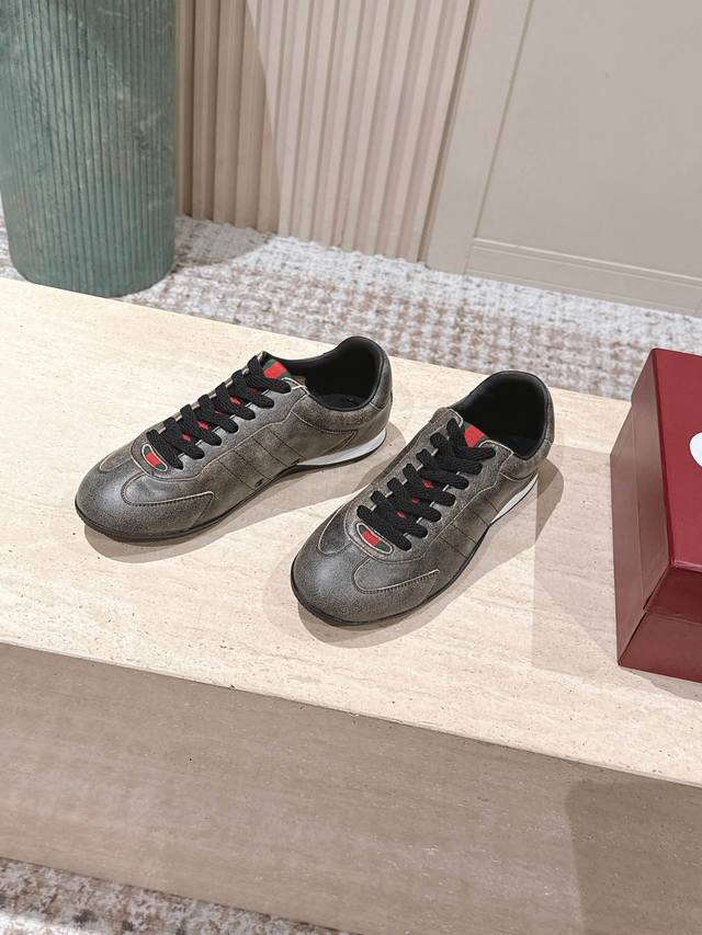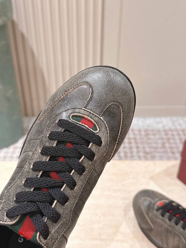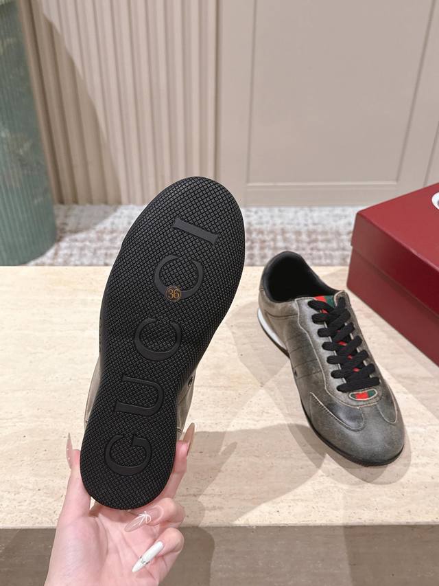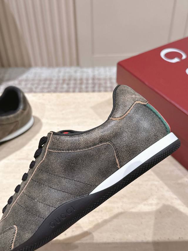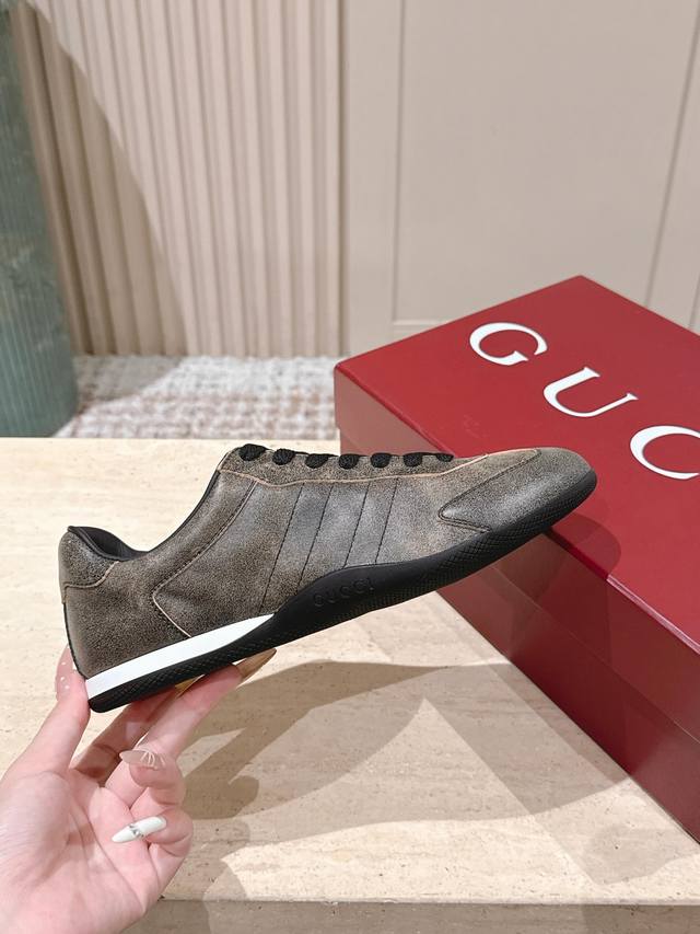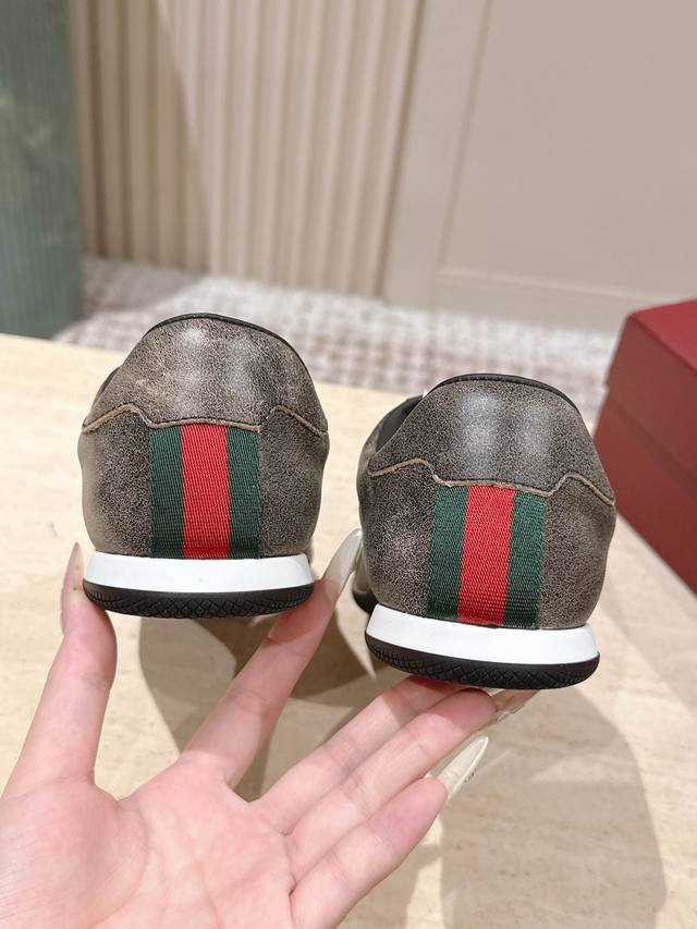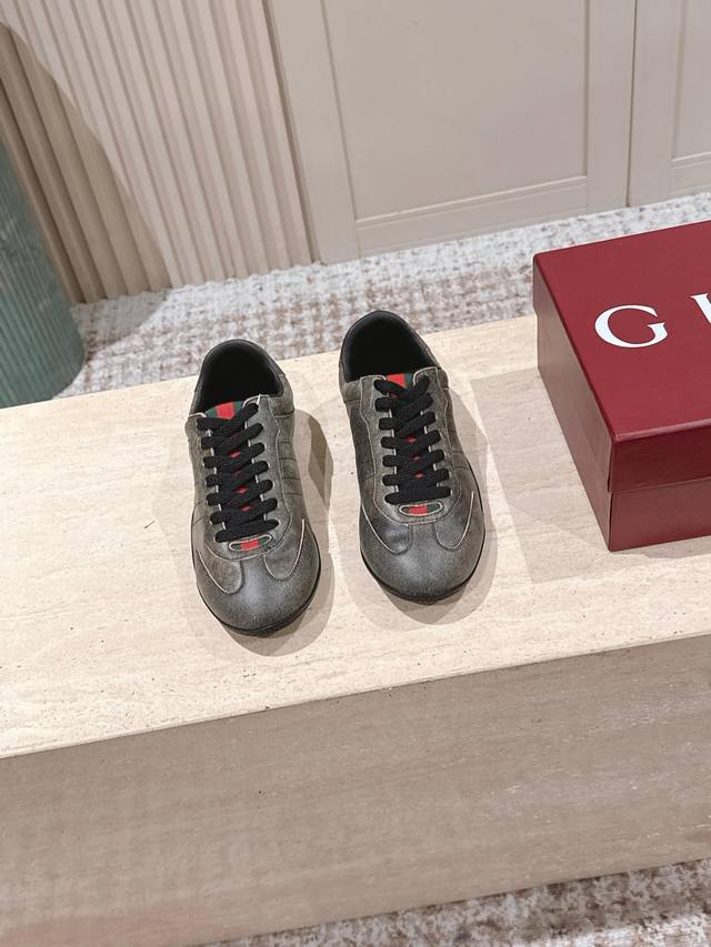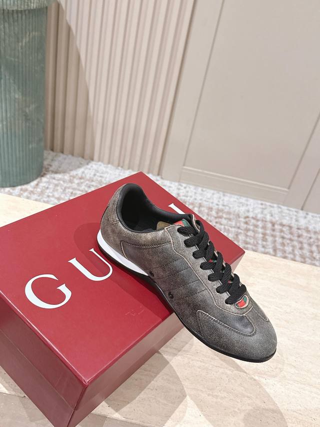 顶级版本! :2025早秋新款Gucci 古驰Shift系列情侣款运动鞋系带休闲德训鞋 DDD Gucci Shift系列全新上市,轻盈设计焕新诠释运动风尚。利落廓形更添自在本色,行动间彰显精致质感。织带细节宛如一道延绵不绝的饰带贯穿于整个设计,侧边缝线细节增添点睛之笔。 DDD 鞋面:水洗效果牛皮 定制麂皮 DDD 内里垫脚:羊皮 DDD 鞋底:开模双色Tpu大底 DDD 码数:女35-39 40.41定做不退换 DDD 男40-44 39 45定做不退换 DDD