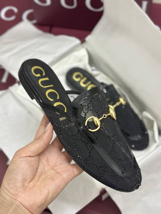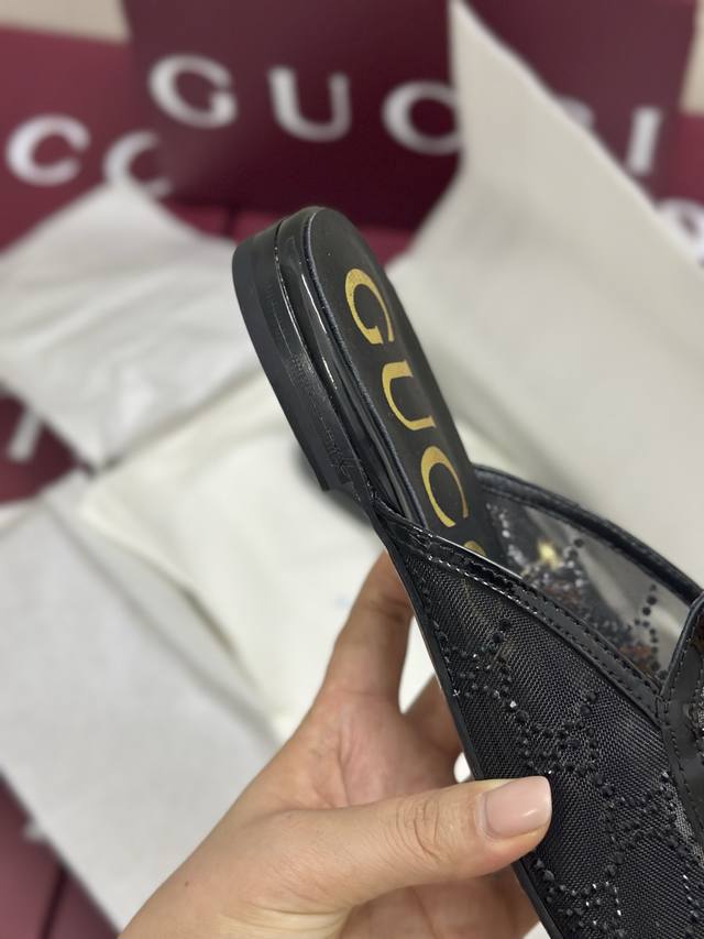 独家升级版本 Gucci古*驰2025春夏最新爆款凉鞋系列 方头纯色水台高跟后空凉鞋 双G钻扣原单品质...