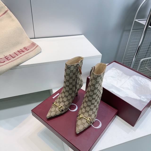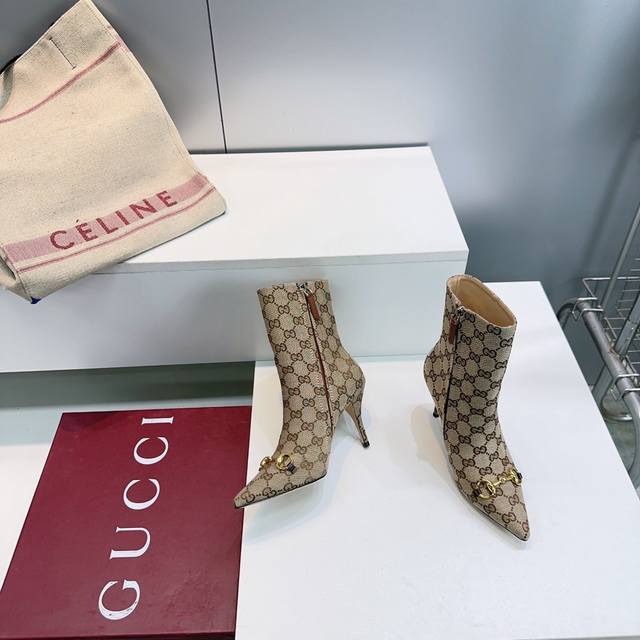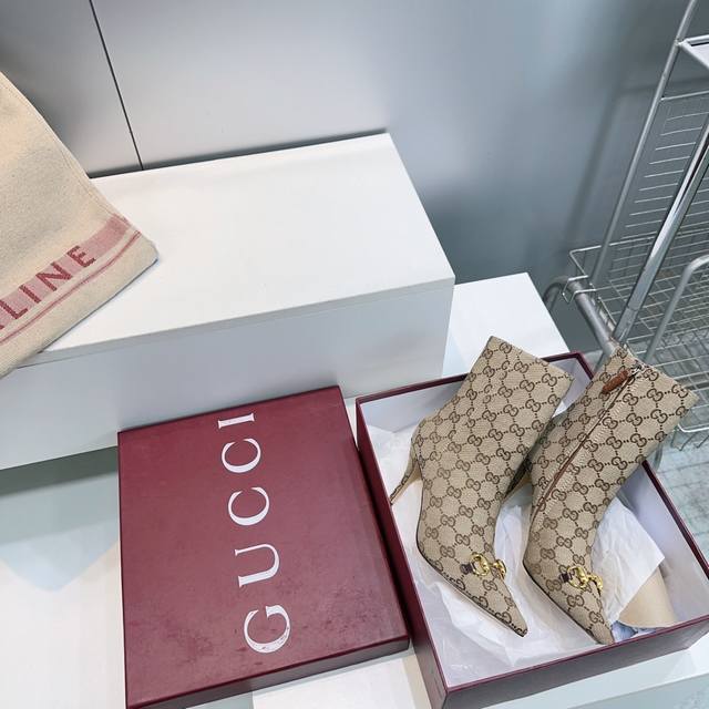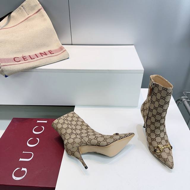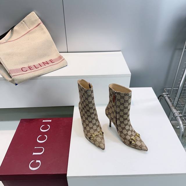 高品质出厂 !顶级品质Gucci古驰25Ss秋冬新品经典老花布马衔五金扣细跟尖头短靴! DDD 以标志性美学重塑冬日踝间格调。 DDD 浅金色调马衔扣缀于靴面 DDD 复刻品牌七十载经典符号 DDD 每一处金属肌理都藏着奢华的匠心密码。 DDD 弹力面料与脚踝精准贴合 消解束缚感 DDD 行走间随步态自然舒展 DDD 恰到好处的粗跟设计 DDD 兼顾稳当脚感与身形修饰 DDD 粗跟堪称高跟鞋新手的友好之选。 DDD 搭配皮革鞋底的细腻质感 DDD 从通勤西装裤到周末针织裙 DDD 都能轻松衔接复古与现代风