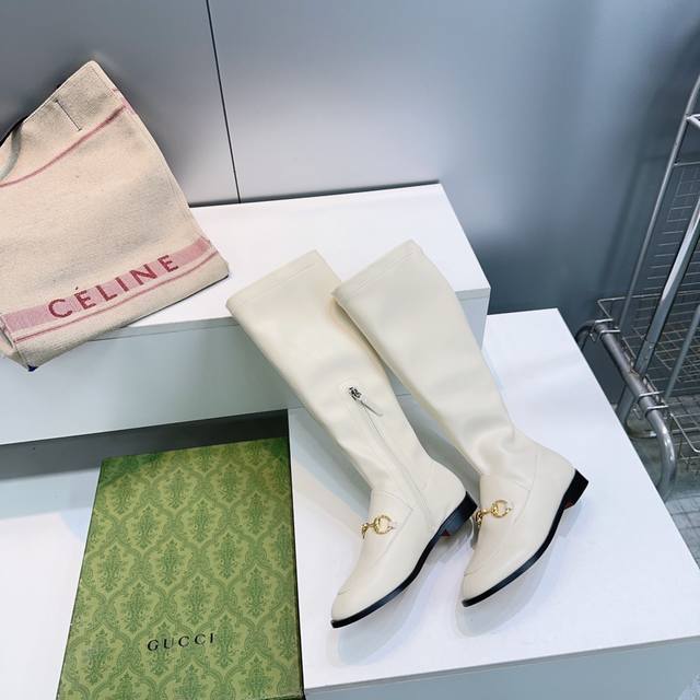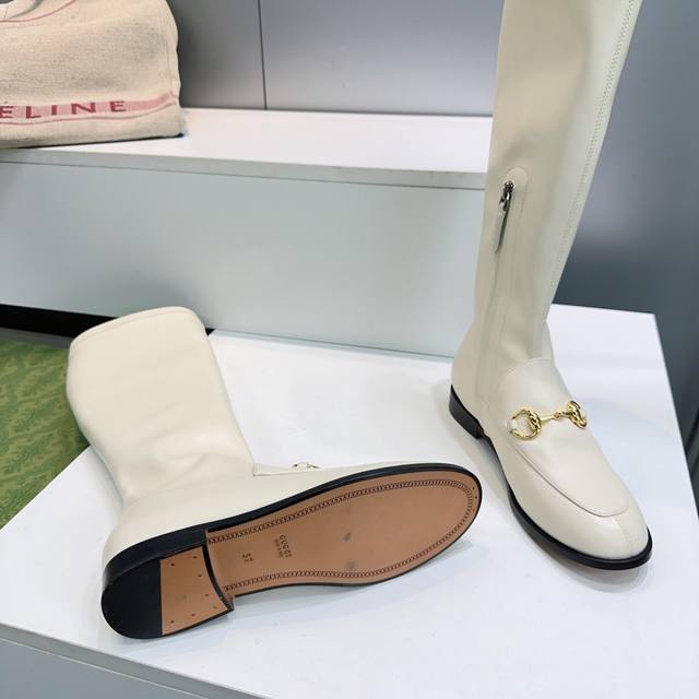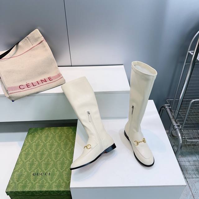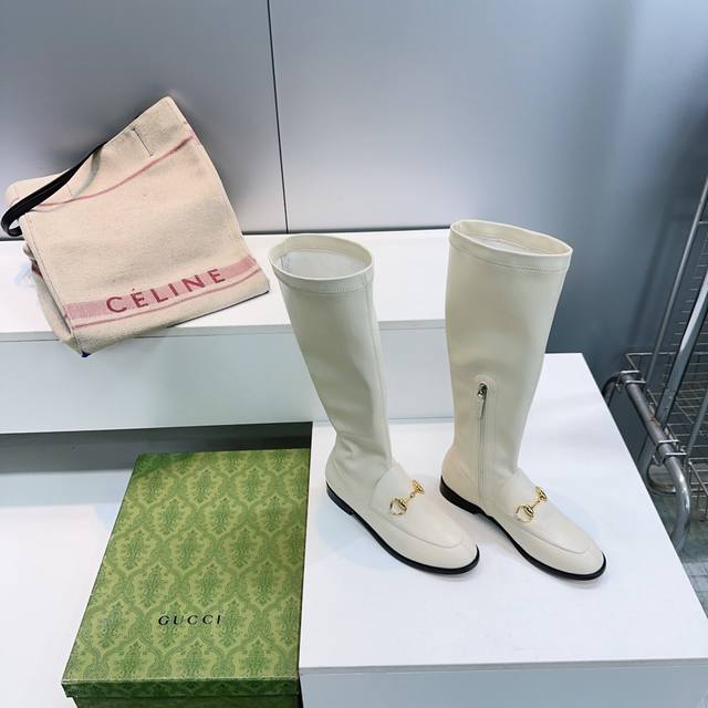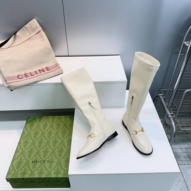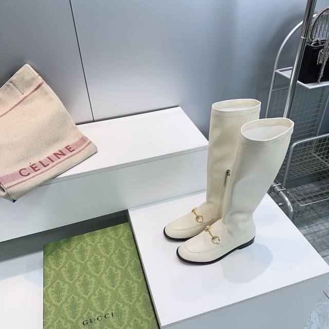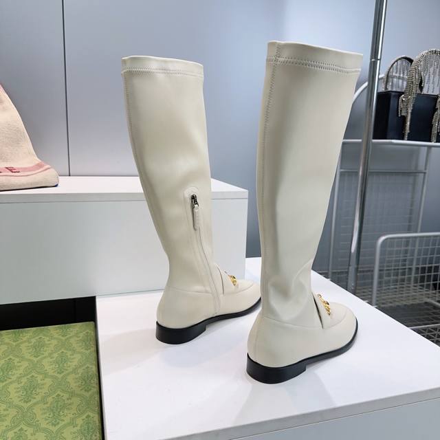 高品质出厂 !顶级品质Gucci 古驰经典双G马衔扣复古平底乐福弹力长靴! DDD 当百年马术基因邂逅现代穿着哲学 DDD 这款弹力靴便有了跨越时光的魅力 DDD 标志性马衔扣以浅金色调雕琢 DDD 既是品牌起源的优雅注脚 DDD 也为鞋身注入低调贵气 DDD 呼应着马术运动的经典与力量 。 DDD 鞋面甄选柔韧弹力皮革 DDD 随双足曲线灵活贴合 DDD 靴口的松紧镶饰消解了束缚感 DDD 让穿脱与行走都成为自在享受 。 DDD 延续乐福鞋的复古轮廓 DDD 搭配利落短靴版型 DDD 皮革鞋底承载着意大