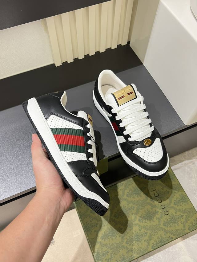 / 高品质Gucc*低帮运动鞋系列复古小脏鞋这款运动鞋以70年代经典运动鞋为灵感原型复古学院风款式与融入怀旧运动服风格的面料风靡数十年,不同风格演绎出的协奏之曲为其