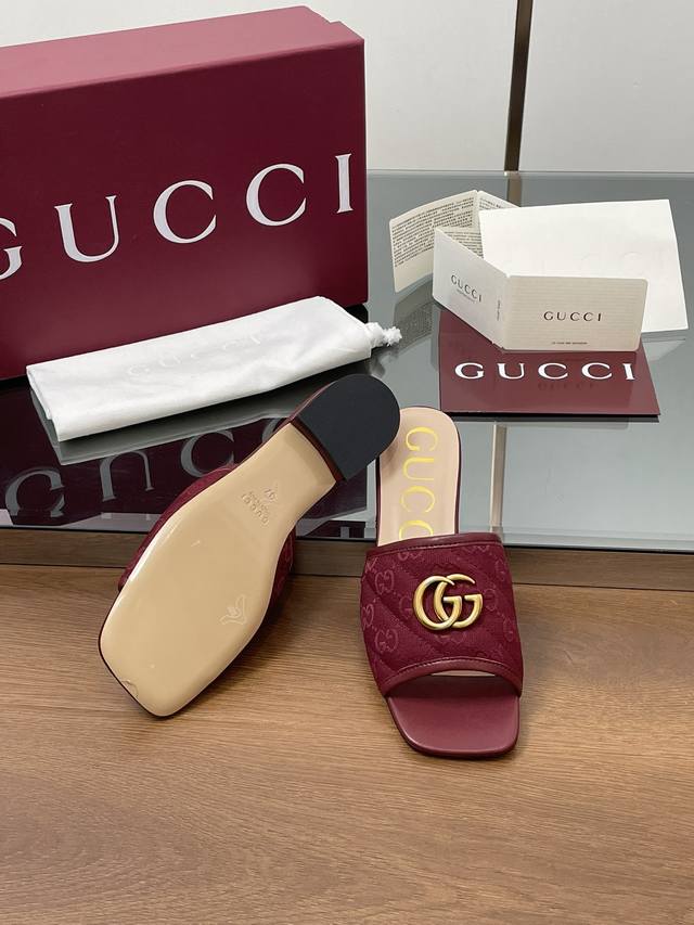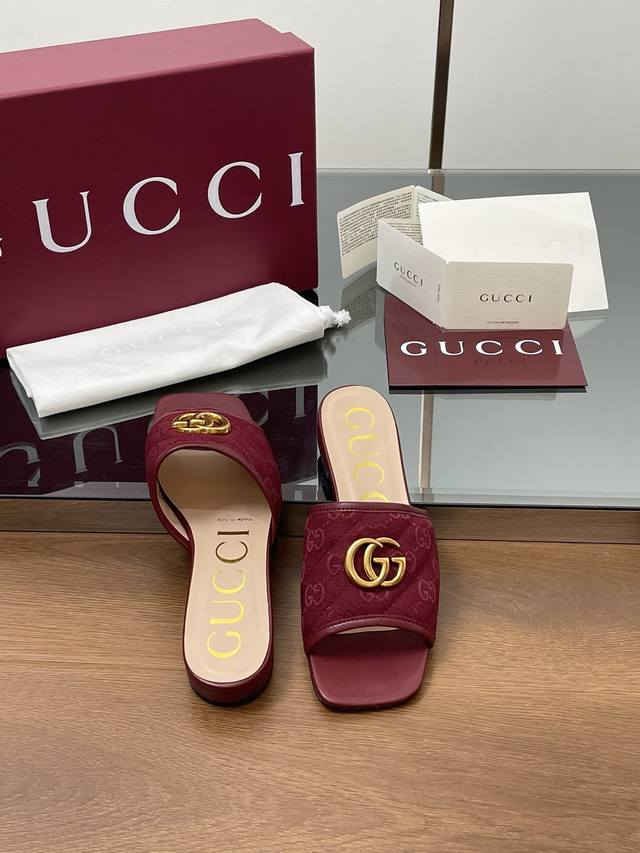 FFF 2025夏季新款新色凉拖鞋现货上新啦。 Gucci 高品质拖鞋 双G五金 5D立体双Gg刺绣露趾凉鞋 拖鞋 DDD 跟高:1.0和2.5Cm中跟,原版一比一! DDD 面料 :进口5D剌绣双Gg织布 DDD 内里垫脚:头层羊皮 DDD 方头经典系列露趾凉拖 顶级代购品质! DDD 大底:意大利真皮大底 DDD 所有均为一比一定制 专注Gucci高端系列 DDD 经典G家五金配色 DDD 脚感舒适程度超乎市场所有同类产品 DDD 全套专柜包装 DDD 尺码:34-43 34 40 41 42 43定