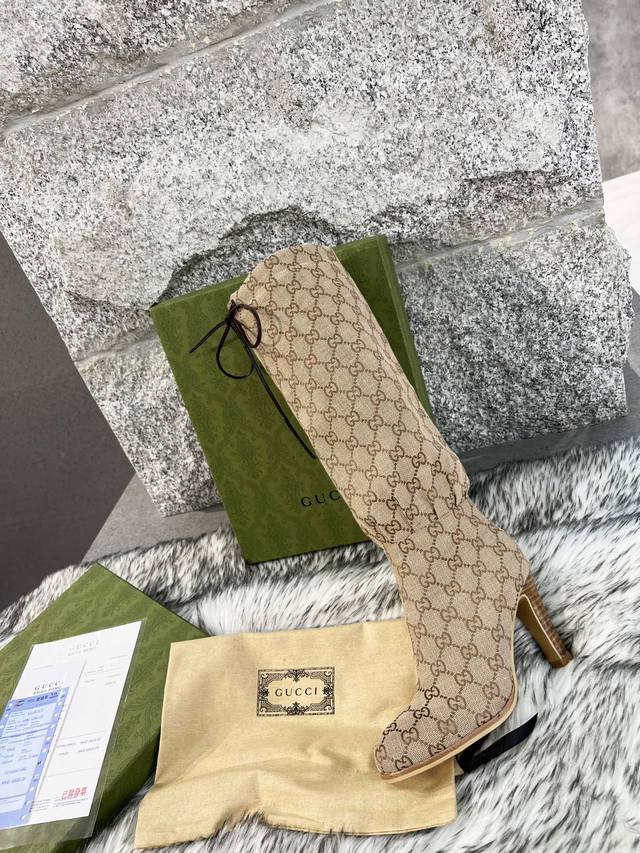 / 2025年Gucci最新款 高跟8.5Cm,靴筒高40Cm,大腿围39Cm。 布面橡胶底p:340米, 真皮底p: 米。 混种羊皮橡胶底p:520米, 真皮底p