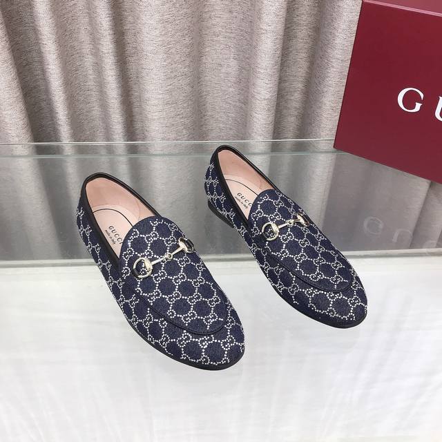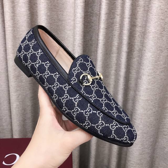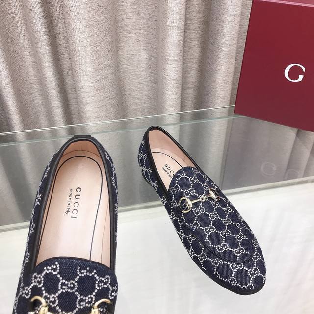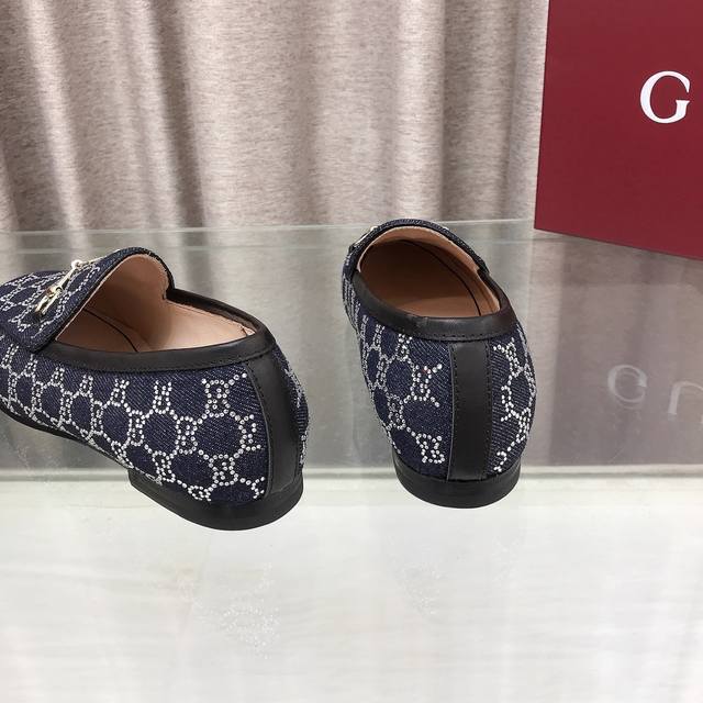 / 2025早秋新款Gucci 古驰Jordaan经典款系列最新版面牛仔布面烫钻乐福鞋马衔扣平底单鞋 本系列尤为注重通过细节打造单品亮点,以蕾丝水晶和薄纱等富有女性