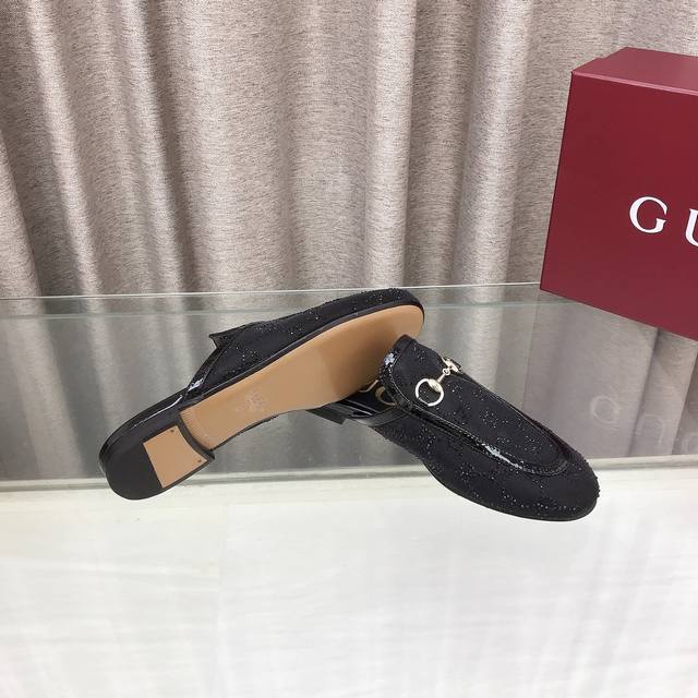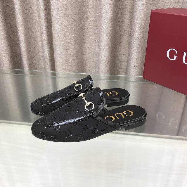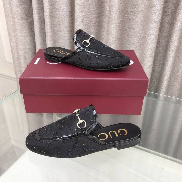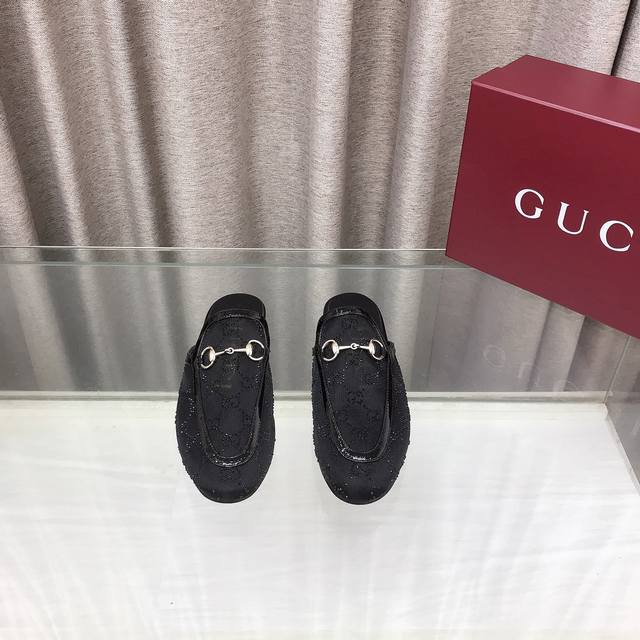 / 2025早秋新款Gucci 古驰Jordaan经典款系列最新版面网纱面烫钻穆勒鞋马衔扣平底半拖鞋 本系列尤为注重通过细节打造单品亮点,以蕾丝水晶和薄纱等富有女性