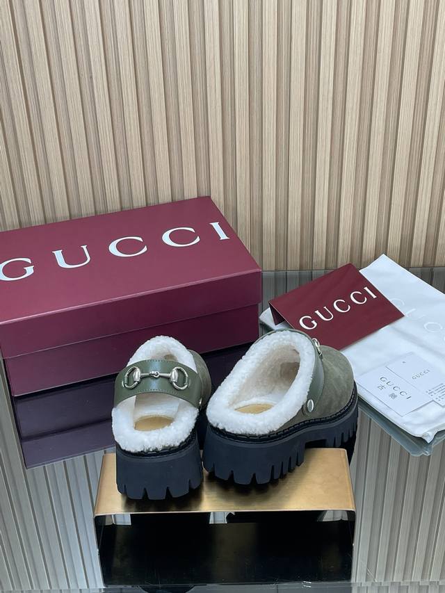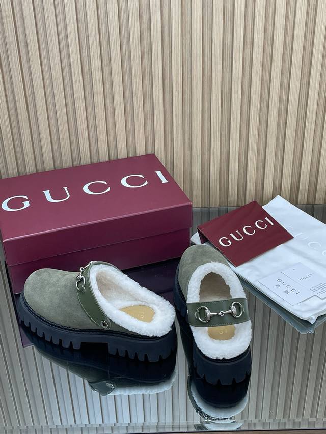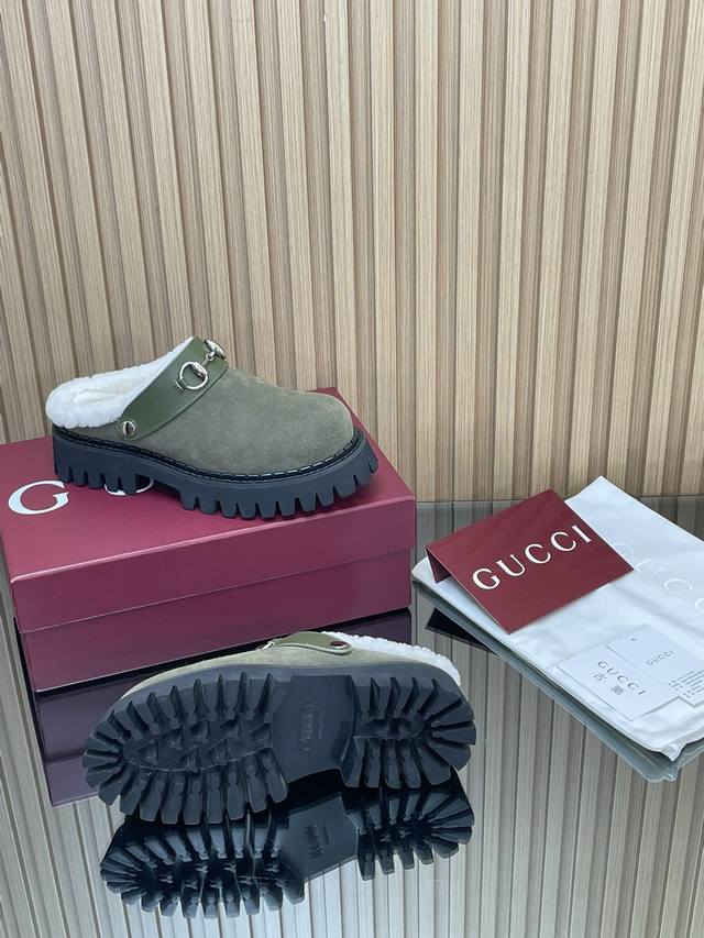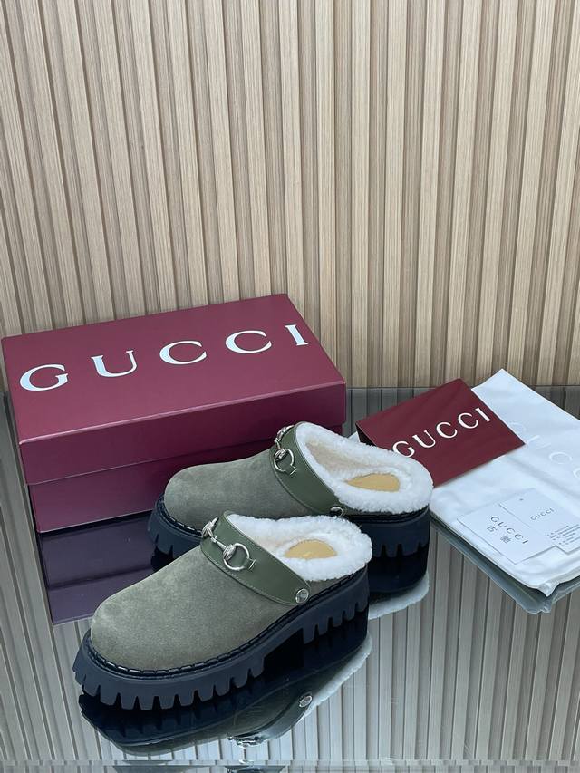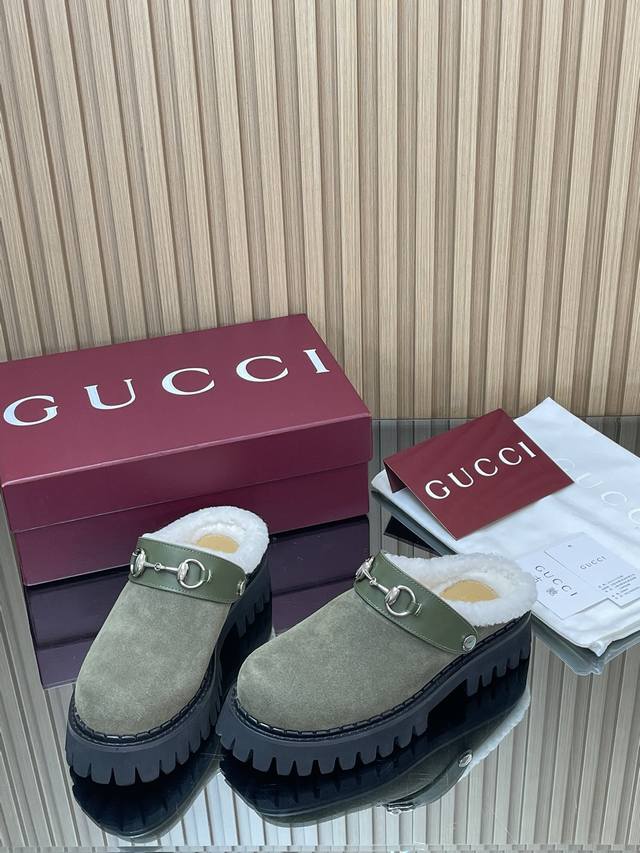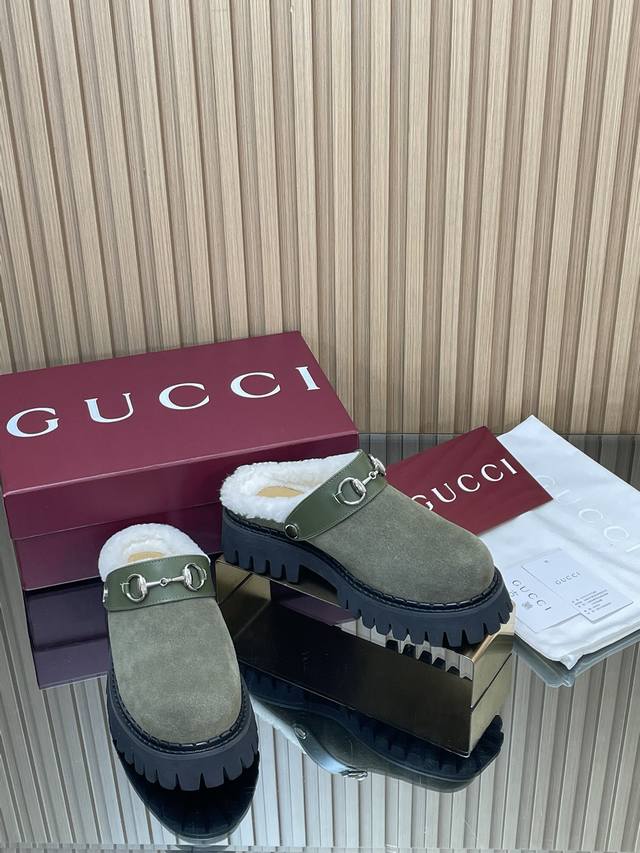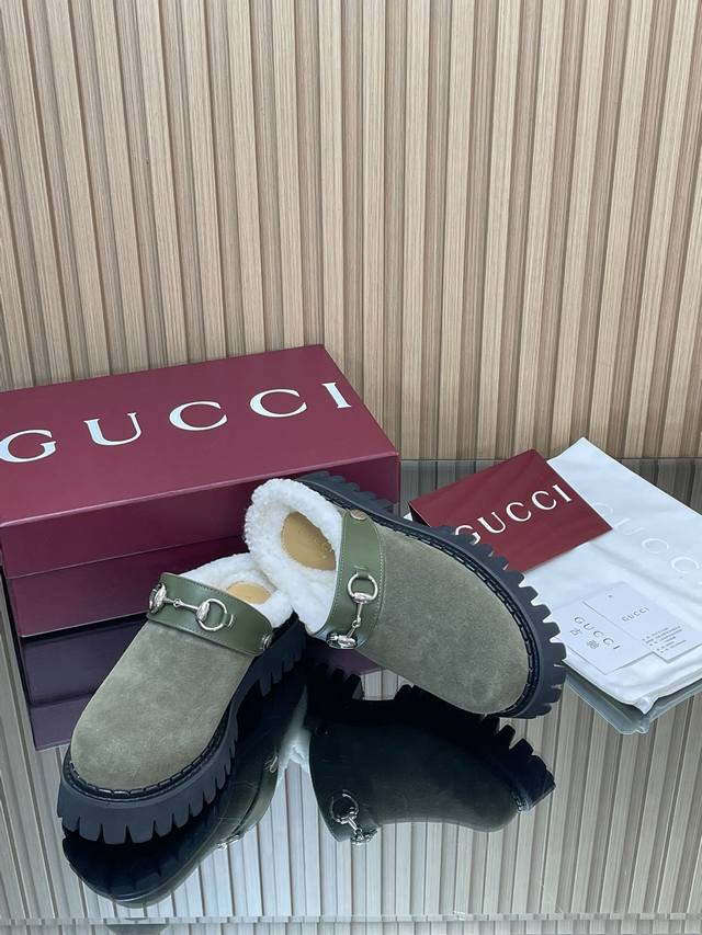 2025早秋Gucci女士马衔扣美利奴羊毛穆勒拖鞋 新款沟纹底乐福鞋懒人松驰感拖鞋后绊带后空造型厚底休闲单鞋 厚底单鞋拖鞋最近都很火爆!就是因为上脚好显瘦!时尚百搭!Y版一致! 作为对品牌马术本源的致敬之作,马衔扣历经时间洗礼后,将厚重历史底蕴与现代时尚型格融为一体。这款女士穆勒鞋采用进口牛皮及光滑绒面材质匠心打造 面料:进口牛皮+丝光牛反绒 复古感十足 内里:进口美利奴羊毛里 大底:1:1模具开发的发泡高韧性鞋底 ,鞋边真皮沿条 绝对不死沉死硬,也绝不坍塌 所有的材质和工艺,与Y版一致 尺码:35-42