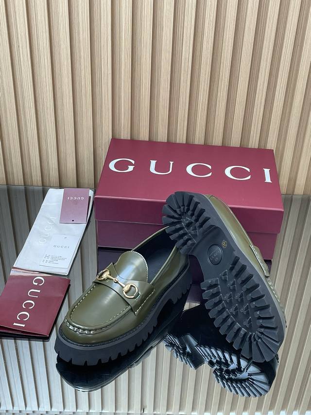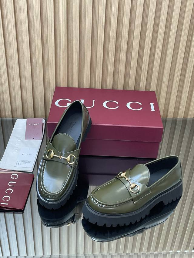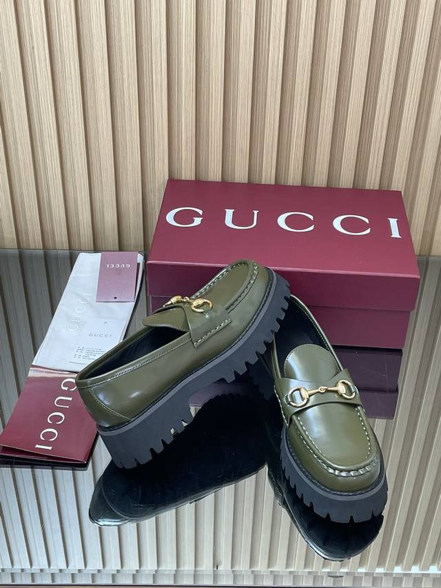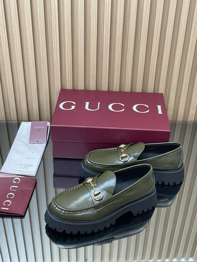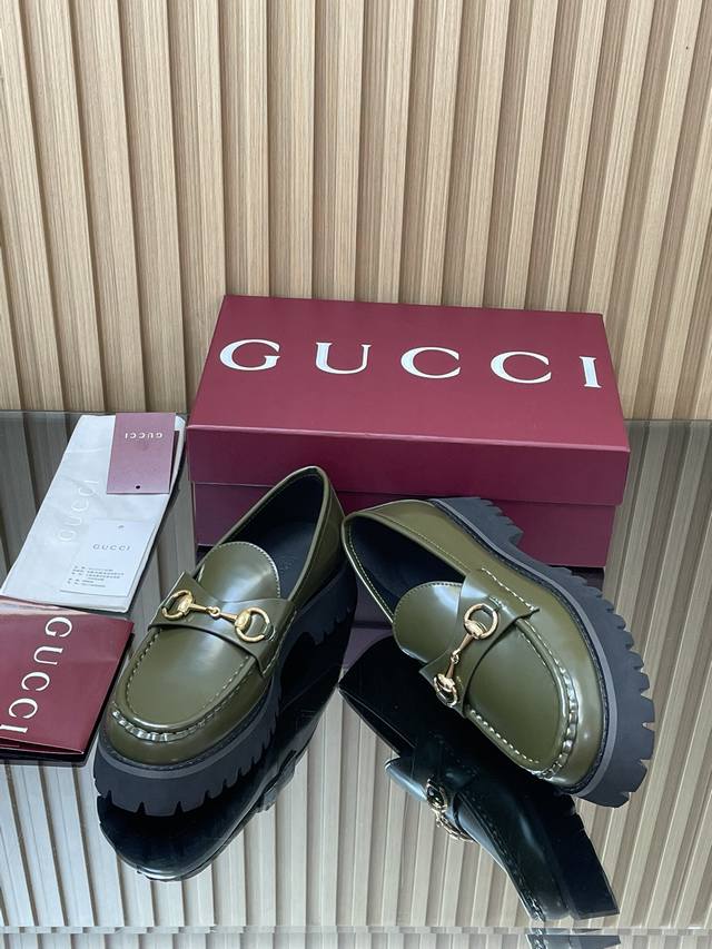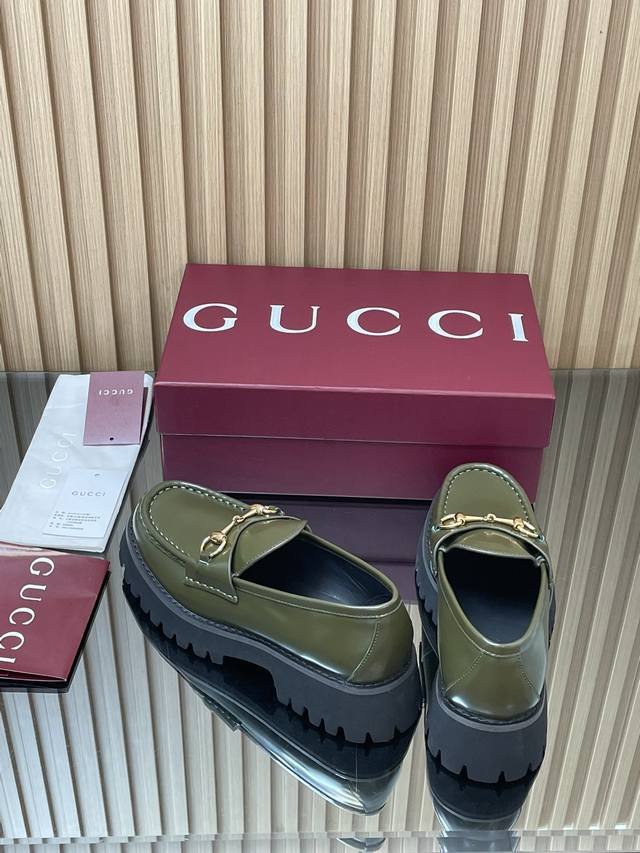 2025秋冬最新Gucci银色钯金马衔扣厚底乐福鞋 代购级别 高端精品尖货 这款乐福鞋匠心融蕴靴子和软帮薤鞋设计中的时尚元素,配以轻质发泡橡胶沟纹鞋底,与优雅廊形相得益彰。经典马衔扣造型配件令整个设计魅力倍增,为日常鞋款注入精致考究气息 面料:进口开边珠 +搭配钯金银马衔扣 内里 垫脚:丝绸牛皮 大底:1:1模具开发的橡胶发泡高韧性鞋底 ,鞋边真皮沿条 绝对不死沉死硬,也绝不坍塌 所有的材质和工艺,与Y版一致 尺码:35-39标准码 4041定做 跟高:4.5Cm 包装:专柜高端红色包装