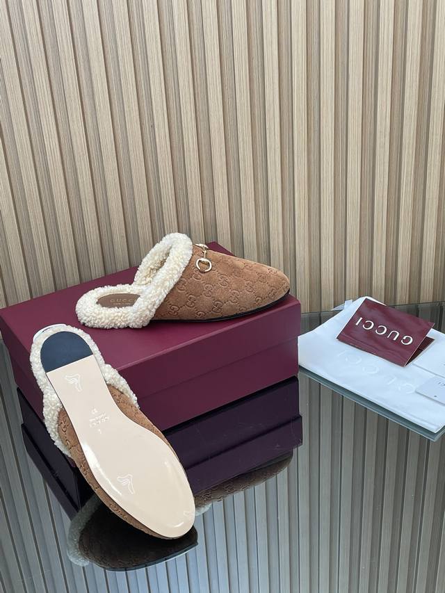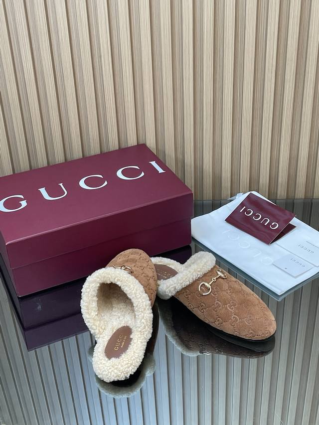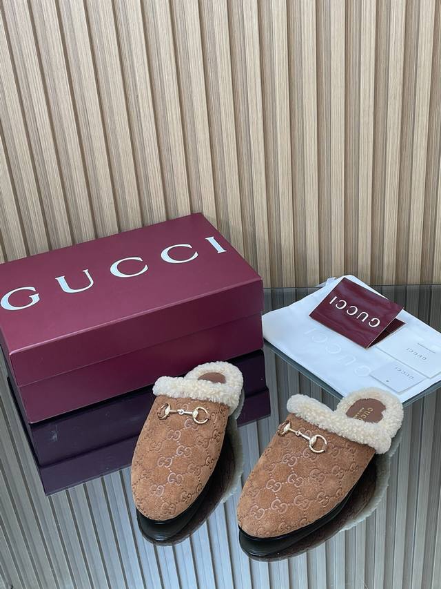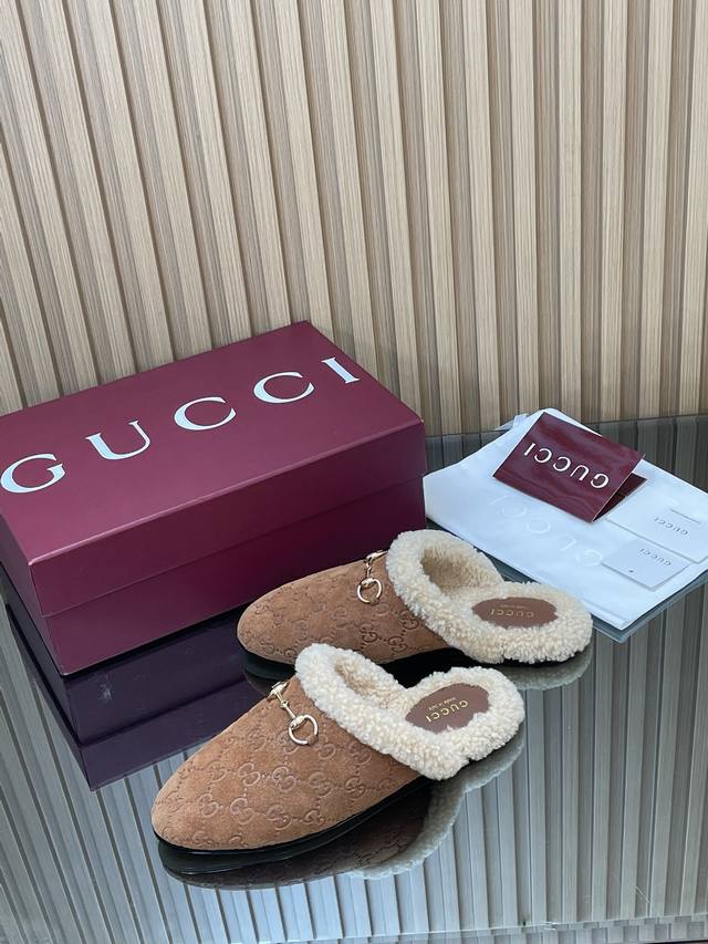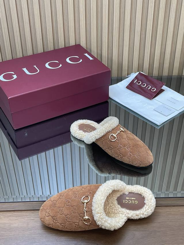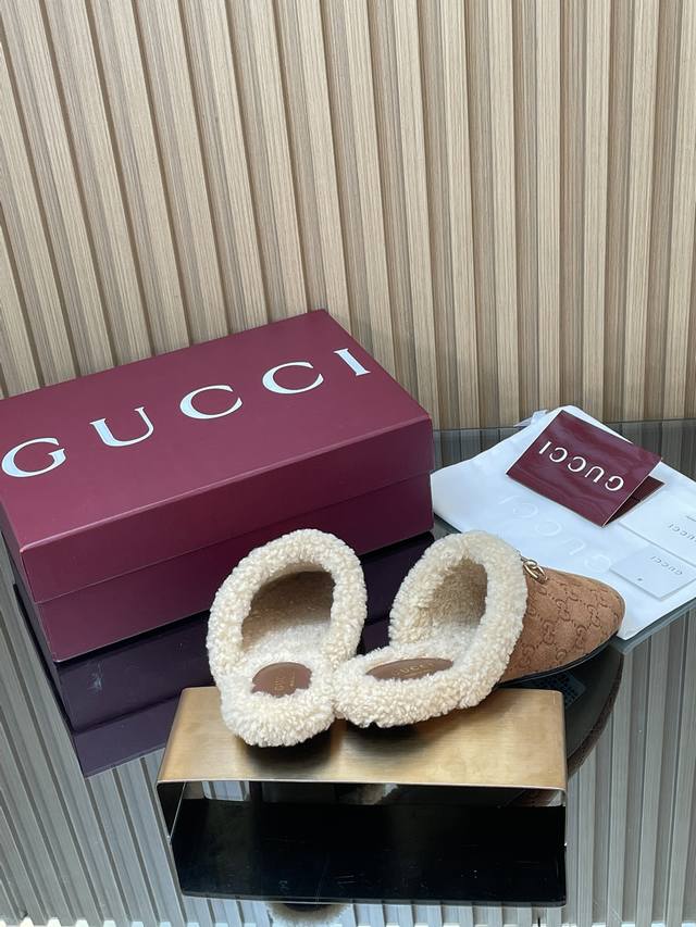 2025秋冬系列新品古奇迷你双G G毛毛鞋美利奴羊毛拖 新品穆勒毛拖 代购级别老钱风休闲松驰懒人毛拖 DDD Gucci 高版本毛拖 原版1:1复刻开发原版一致进口磨砂绒面鹿皮版型1:1复制,顶级品质 DDD 面料:进口G G压纹磨沙鹿皮 DDD 内里 垫脚:牛皮100% 进口美利奴羊毛 DDD 大底:意大利真皮底 DDD 扣饰:浅金马街扣 DDD 包装:全套安可拉酒红包装 DDD 尺码:35-42 404142定制,不退换 DDD 这款经典穆勒鞋透过Gucci 美学视觉焕新演绎。柔软加衬鞋面与经典廊形相