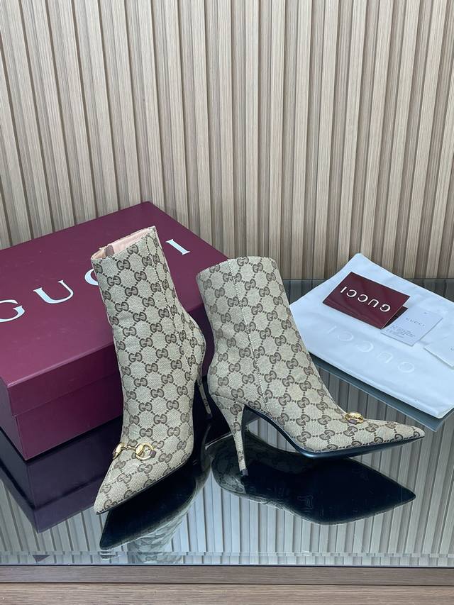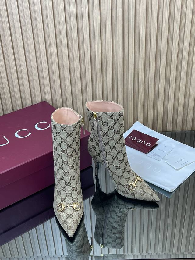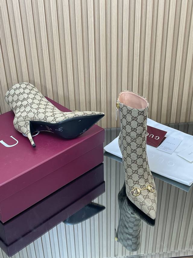 2025秋冬G家新款Gucc马衔扣高跟短靴尖头及踝靴裸靴 出厂价P 顶级版本、欢迎比对. 原版1:1复刻 注意市面通货内里很多都不对版哦请认准咱家正品保证 鞋面:全粒纹高档小牛皮 G G老花布 内里 垫脚:全粒纹高档小羊皮 鞋底:意大利顶级真皮底 跟高:10.Cm 配码:35-42 41 40 42定做不退换 包装:原版全套安可拉酒红新包装 Gucci创作总监推出全新尖头马衔扣及踝鞋靴,对于性别平等和倡导女性赋权的承诺,尖头廊形缀饰别致标志细节,彰显美丽,力量和自由精神