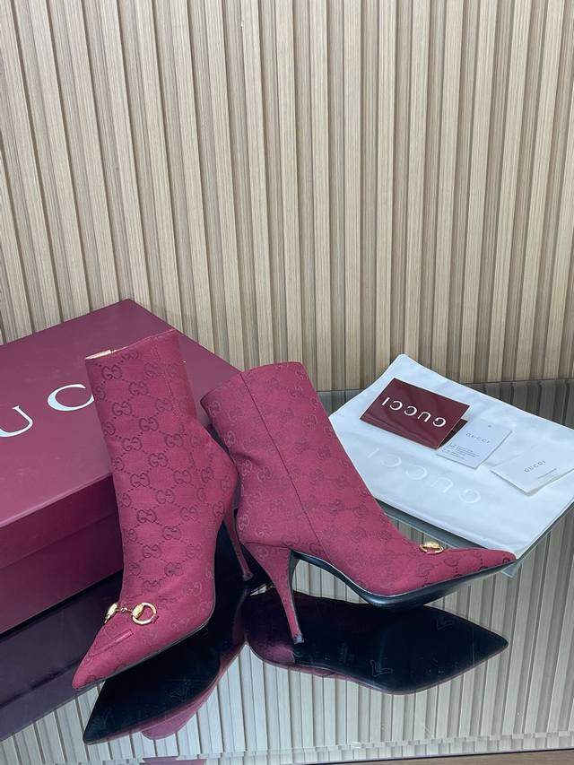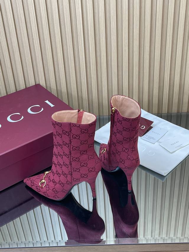 2025秋冬G家新款Gucc马衔扣高跟短靴尖头及踝靴裸靴 出厂价P 顶级版本、欢迎比对. 原版1:1复刻 注意市面通货内里很多都不对版哦请认准咱家正品保证 鞋面:全粒纹高档小牛皮 G G老花布 内里 垫脚:全粒纹高档小羊皮 鞋底:意大利顶级真皮底 跟高:10.Cm 配码:35-42 41 40 42定做不退换 包装:原版全套安可拉酒红新包装 Gucci创作总监推出全新尖头马衔扣及踝鞋靴,对于性别平等和倡导女性赋权的承诺,尖头廊形缀饰别致标志细节,彰显美丽,力量和自由精神