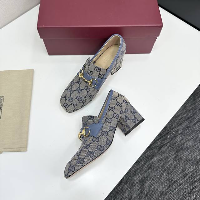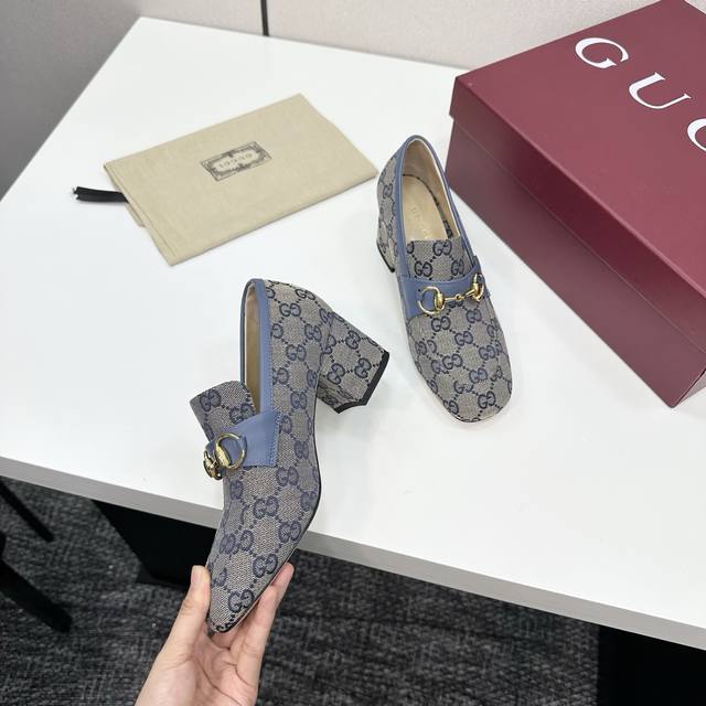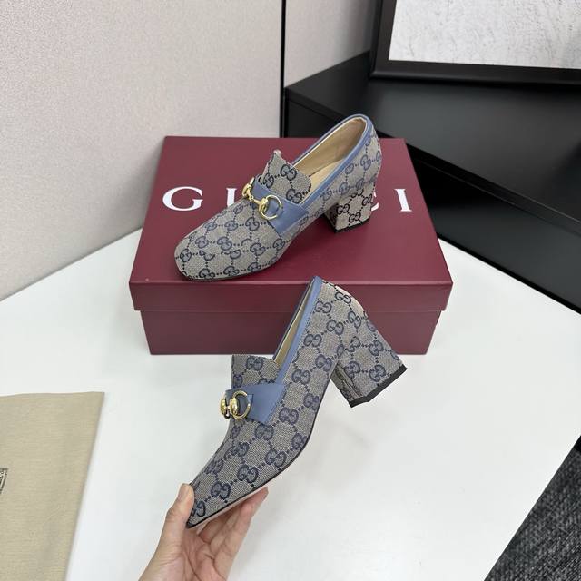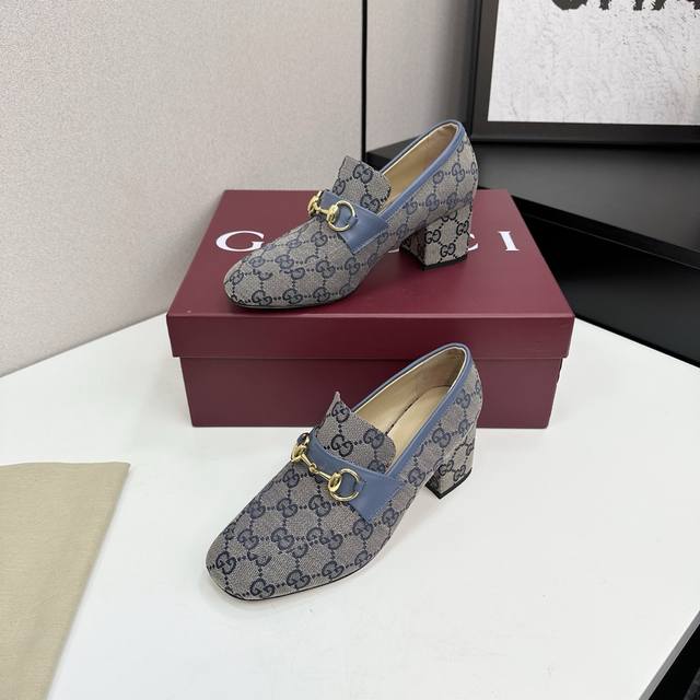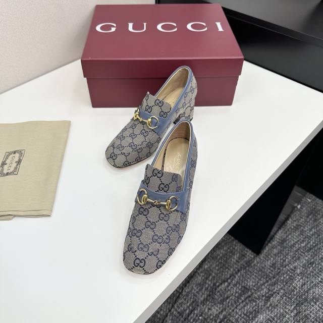 / 2025秋季新款Gucci 古奇浅口单鞋马衔扣乐福鞋,巧妙运用圆形鞋头等设计时尚风范 面料:牛漆皮 羊皮 内里,垫脚 :羊皮 跟高:5.5Cm 码数:35 39