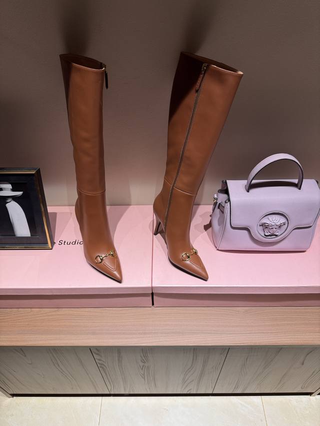2025Fw秋冬新品高跟长靴 冬季古驰家新款尖头时装侧拉链长靴 Gucci字母扣L O G O链条高跟系列女靴 鞋面:小牛皮 内里 垫脚:小羊皮 鞋底:意大利顶