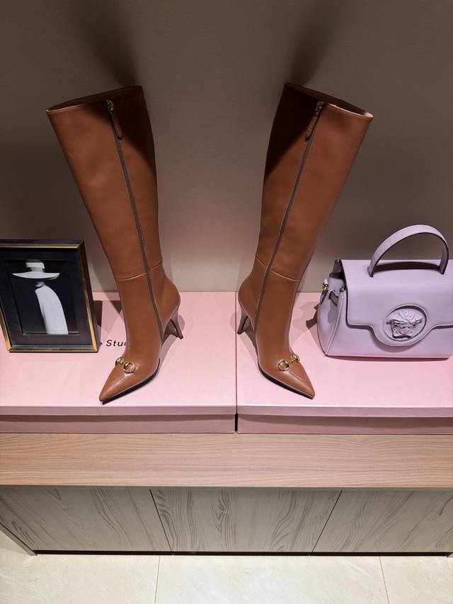 / 2025Fw秋冬新品高跟长靴 冬季古驰家新款尖头时装侧拉链长靴 Gucci字母扣L O G O链条高跟系列女靴 鞋面:小牛皮 内里 垫脚:小羊皮 鞋底:意大利顶