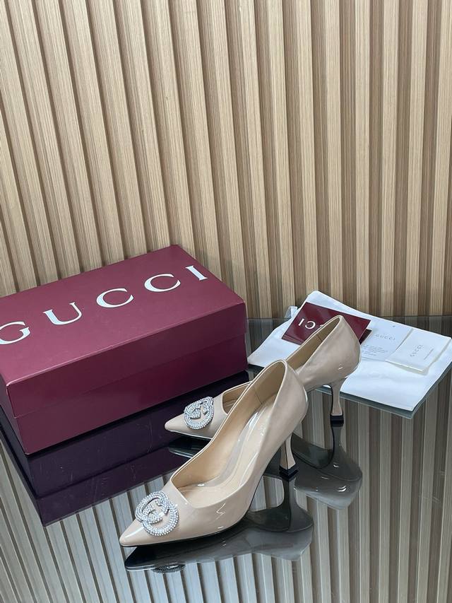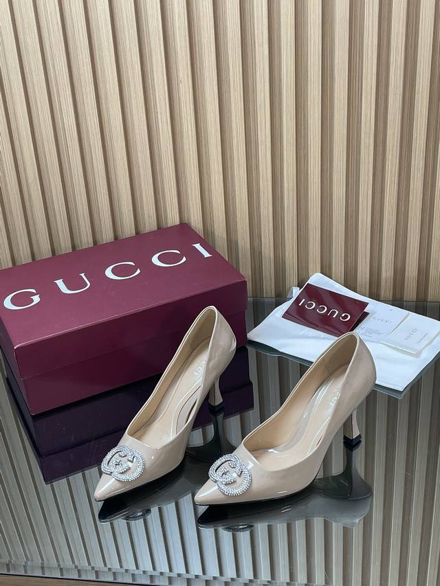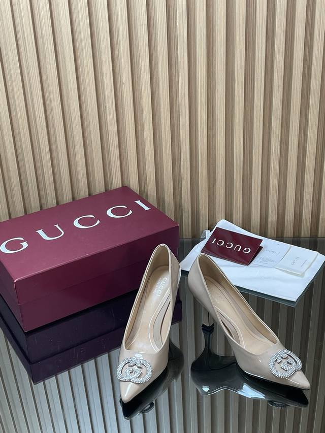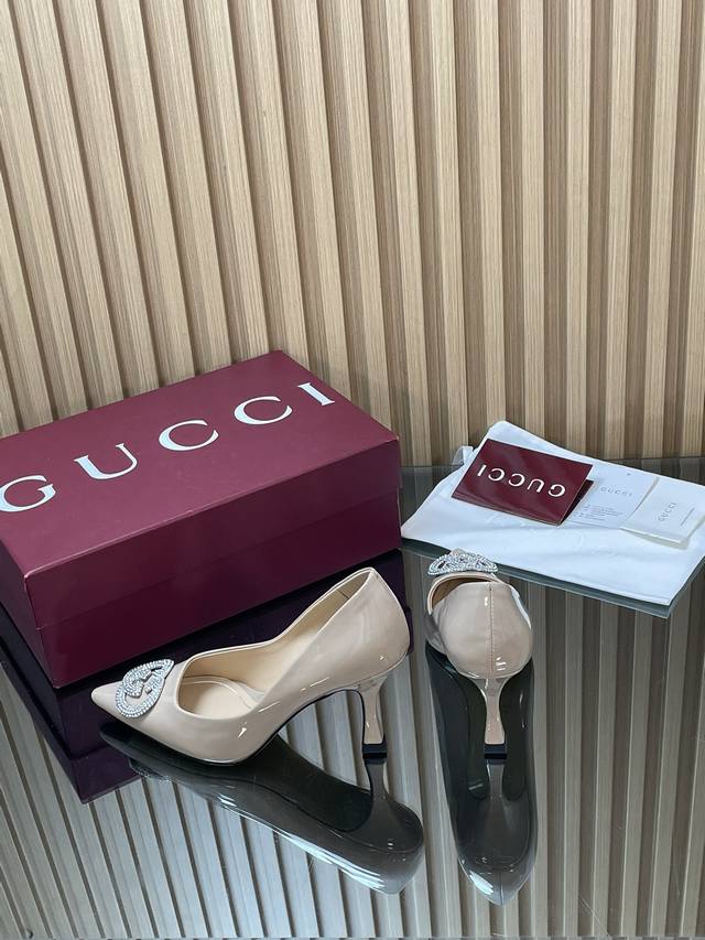2026早春G家新款Gucc水晶钻镶嵌互扣式双G扣浅口女鞋酒杯马蹄跟通勤单鞋奢华大气高贵高跟鞋 出厂价p DDD 顶级版本、欢迎比对. 原版1:1复刻 Ddd 注意请认准咱家正品保证 DDD 鞋面:进口漆皮 粒面皮 金属皮 羊京鹿皮 Ddd 内里 垫脚:全粒纹高档小羊皮 Ddd 鞋底:意大利顶级真皮底 Ddd 跟高:8.5Cm Ddd 配码:35-42 42 41 40定做不退换 Ddd 包装:原版全套安可拉红色包装 DDD Gucci这款浅口鞋甄选进口漆皮金属皮羊京鹿皮打造,鞋型线条优雅利落,兼具百搭与