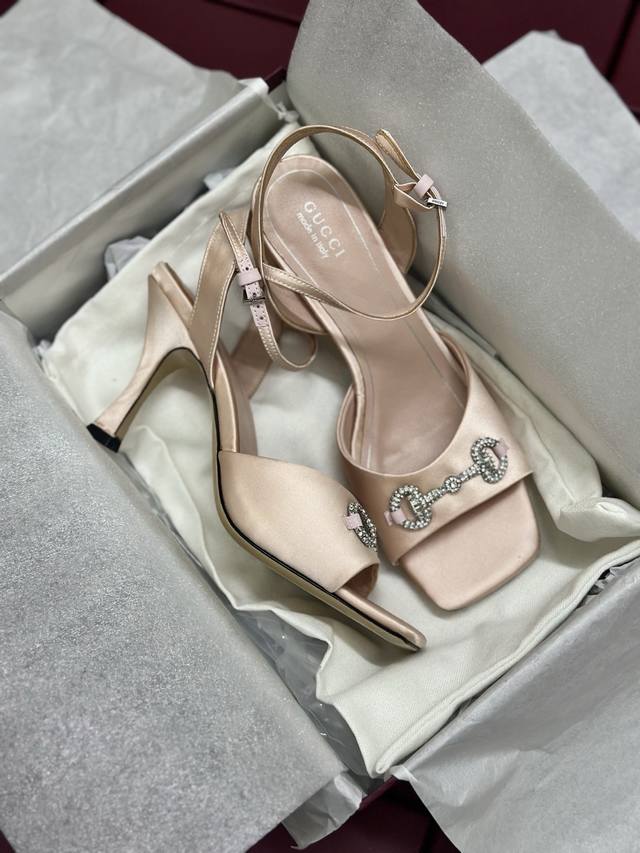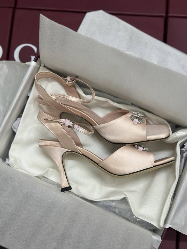 厂价 Gucci 古驰25Ss水钻双G粗跟方头后空凉鞋简直是时尚圈的一颗重磅炸弹...
