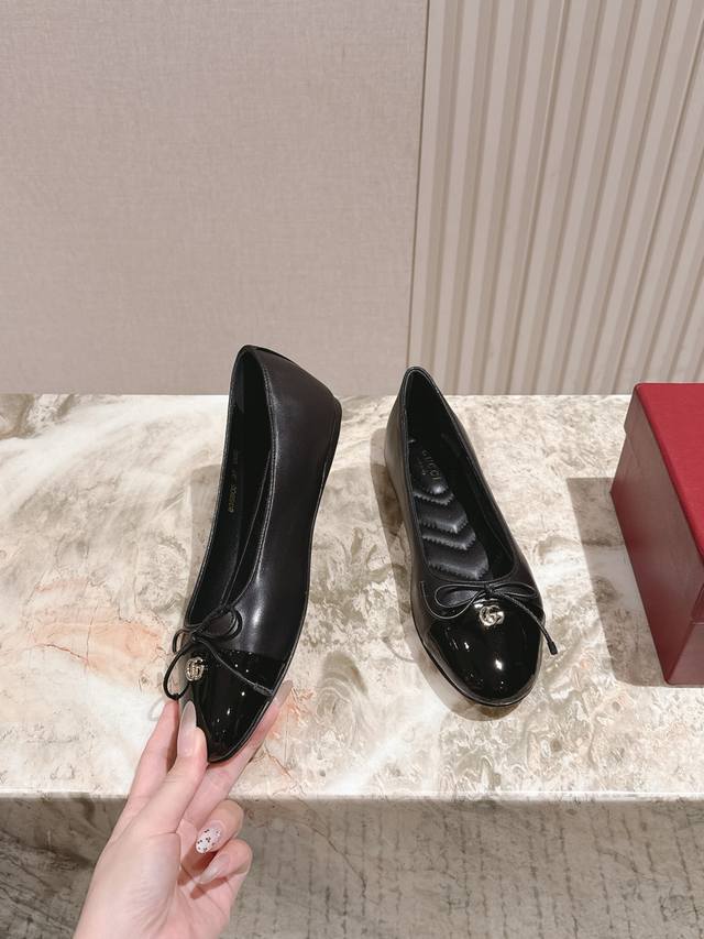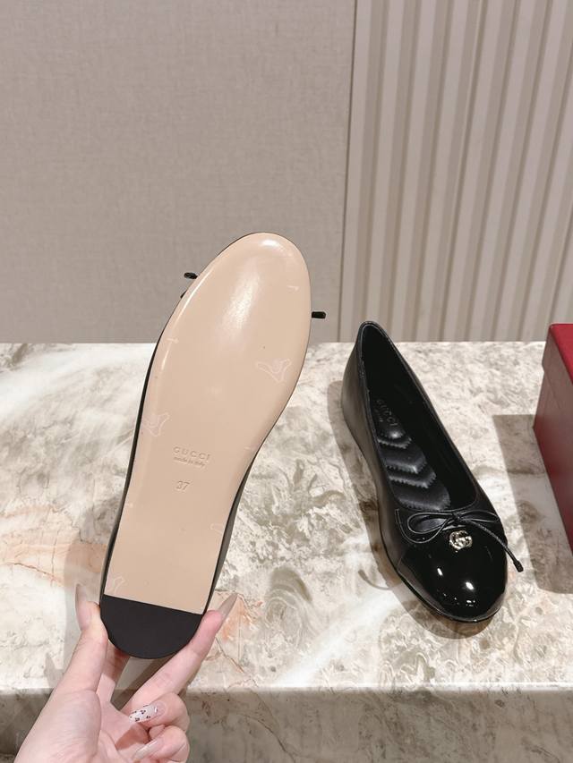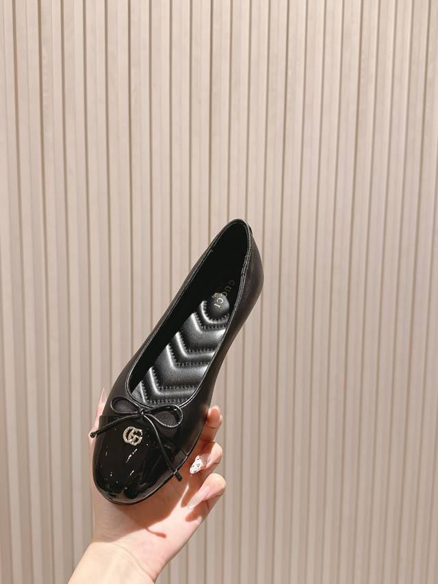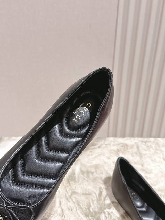 225 Gucci古驰芭蕾鞋就说今年是芭蕾鞋大年,Gucci 专柜最新系列的芭蕾鞋也火了!小圆头设计+蝴蝶结钻扣,在精致、优雅中又带着一丝俏皮,穿起来时髦又好看 鞋面:牛皮 内里:羊皮 垫脚:羊皮 鞋底:Gucci原版真皮大底 码数:35-40 全套专柜同步礼盒包装!
