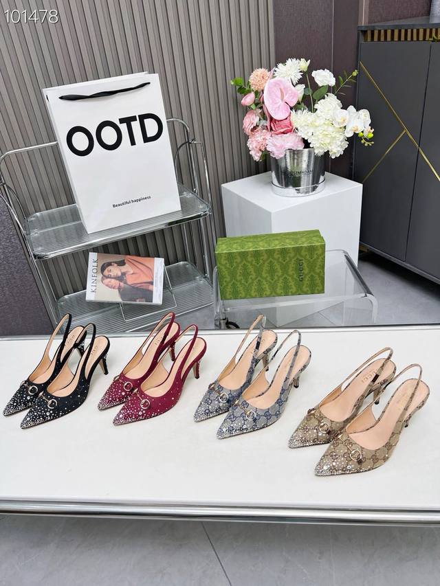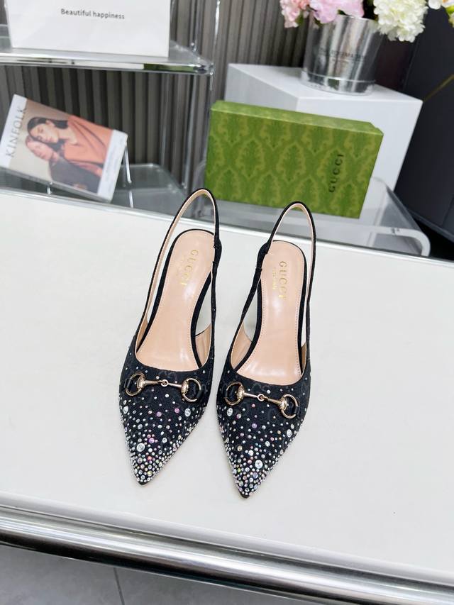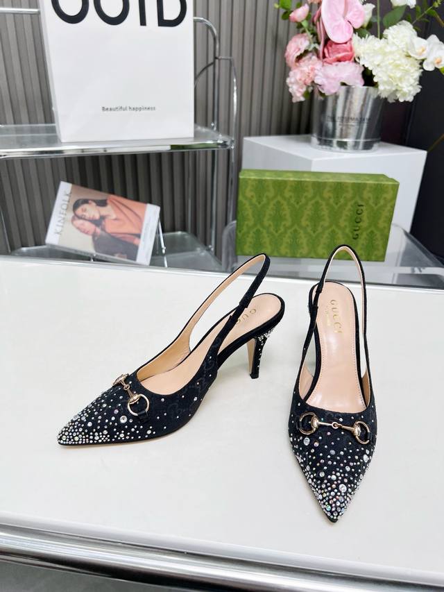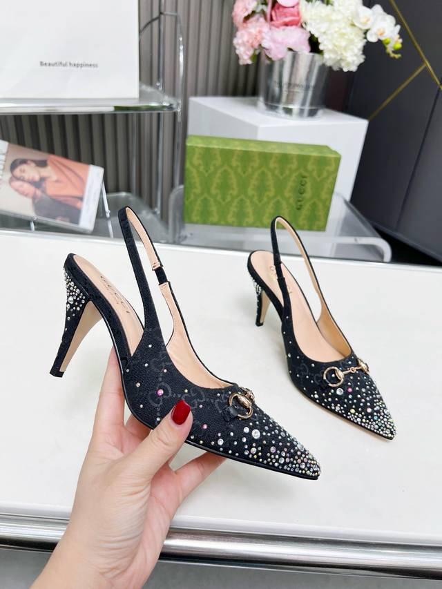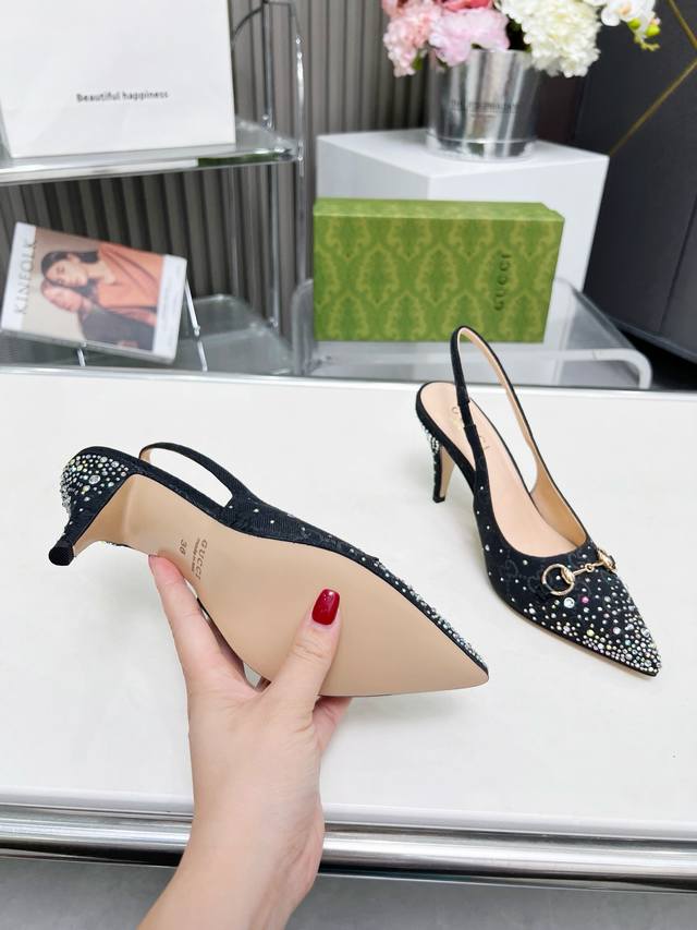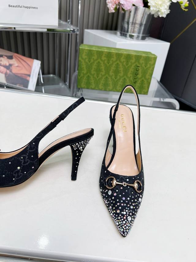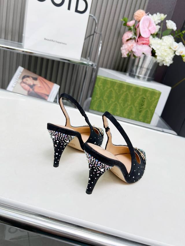 / 2519一9 Gucci 最新爆款 专柜原版鞋开模制作 原版五金链条扣 双G布烫闪亮彩钻 大牌明星最爱的奢侈品 面料:古奇原版双G布烫钻 内里:羊皮 跟高85毫