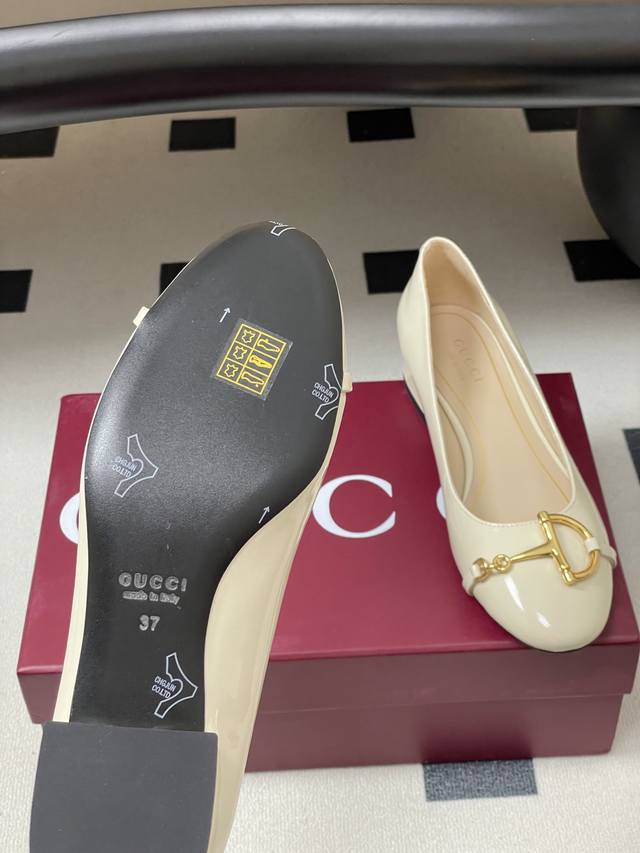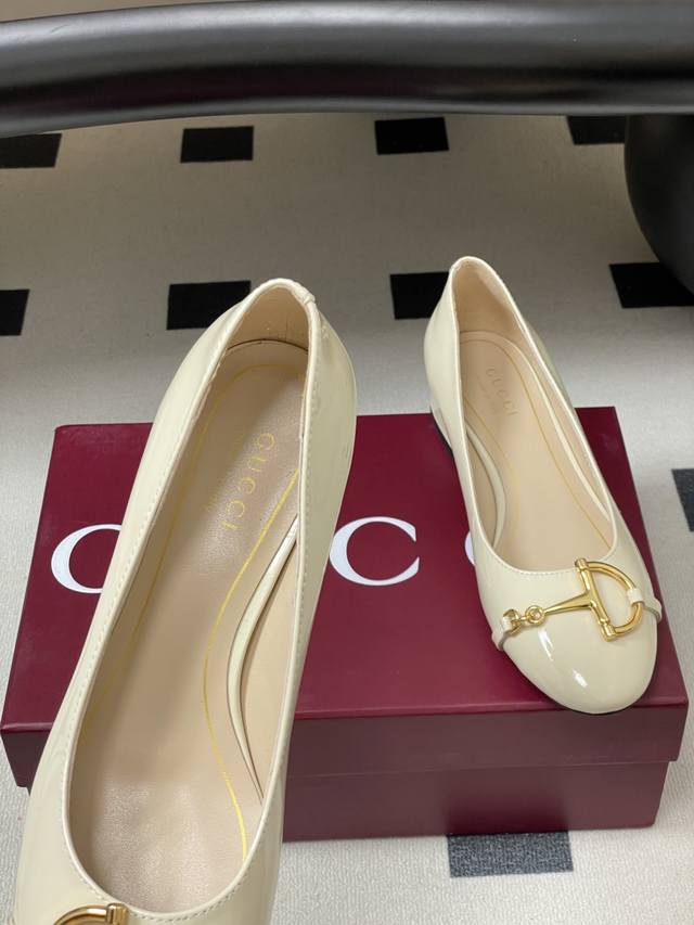 25Ss早秋新款Gucci古驰大D半马衔扣玛丽珍鞋漆皮芭蕾舞鞋低跟单鞋 2025秋冬系列,这款女士芭蕾舞平底采用光泽感漆皮匠心打造,以品牌标志性元素焕新诠释经典