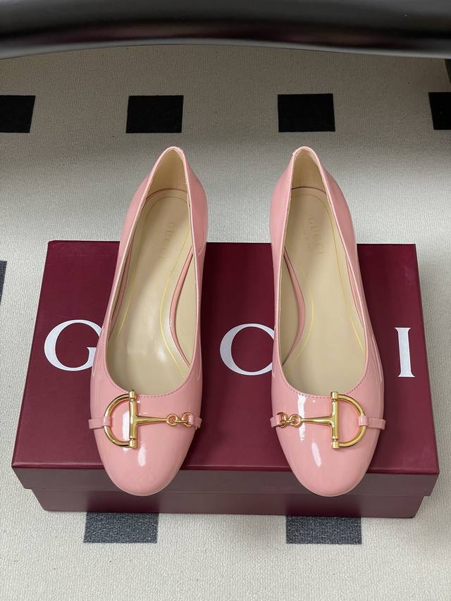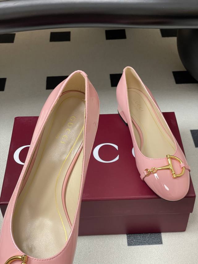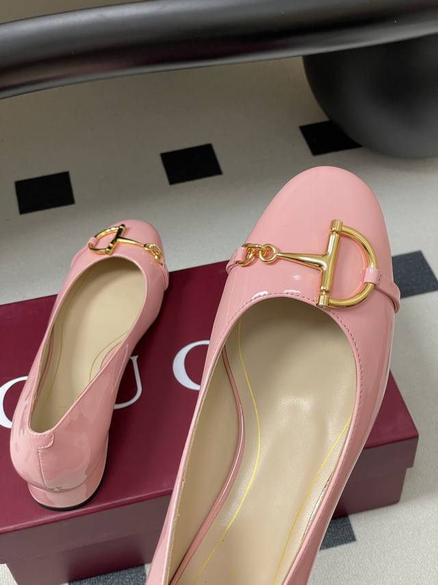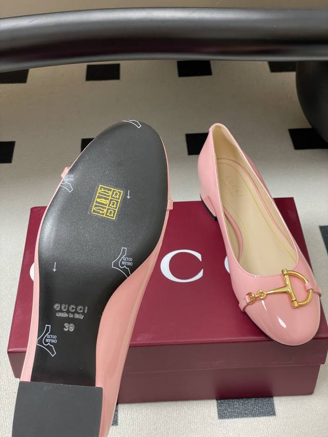 25Ss早秋新款Gucci古驰大D半马衔扣玛丽珍鞋漆皮芭蕾舞鞋低跟单鞋 2025秋冬系列,这款女士芭蕾舞平底采用光泽感漆皮匠心打造,以品牌标志性元素焕新诠释经典