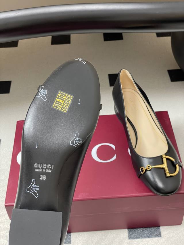 25Ss早秋新款Gucci古驰大D半马衔扣玛丽珍鞋漆皮芭蕾舞鞋低跟单鞋 2025秋冬系列,这款女士芭蕾舞平底采用光泽感漆皮匠心打造,以品牌标志性元素焕新诠释经典廓形。金色调半马衔扣细节增添雅致风范,透过当代视角致敬品牌马术传承。 原版开模金属五金扣 鞋面:牛皮 牛漆皮 内里垫脚:羊皮 鞋底:意大利真皮大底 跟高:2.5Cm 码数:35-39 40.41.42定做不退换 配专柜最新安可拉红色包装
