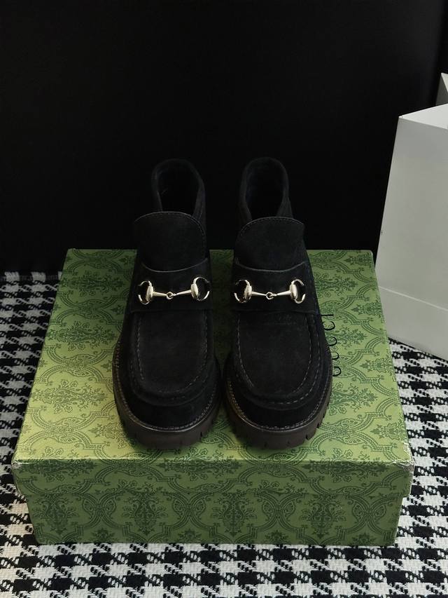 / 25Ss秋冬新款古驰马衔扣短靴4寸 以品牌标志性元素焕新诠释经典廊形。马衔扣细节增添雅致风范,透过当代视觉致敬品牌马术传承原版开模金属五金扣 鞋面材质:原版牛京