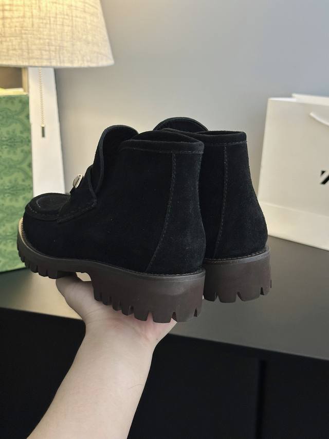 25Ss秋冬新款古驰马衔扣短靴4寸 以品牌标志性元素焕新诠释经典廊形。马衔扣细节增添雅致风范,透过当代视觉致敬品牌马术传承原版开模金属五金扣 鞋面材质:原版牛京