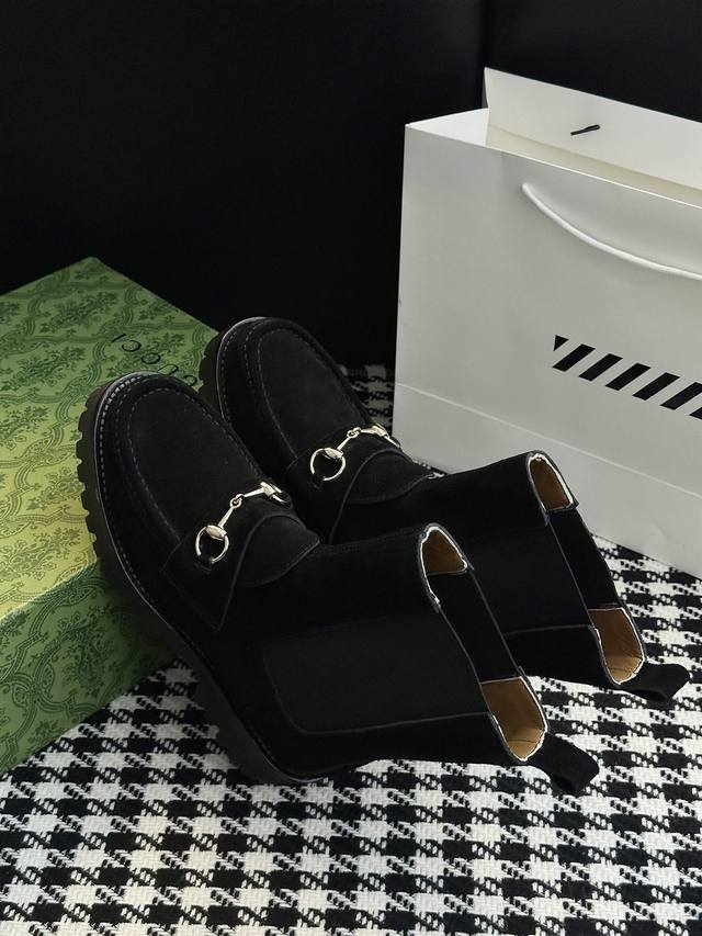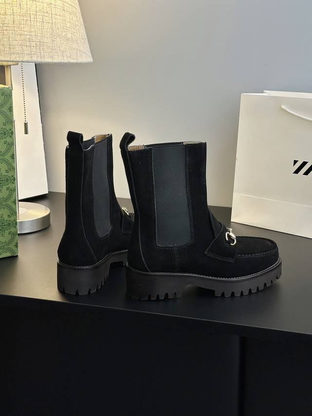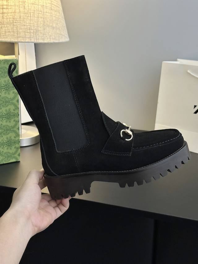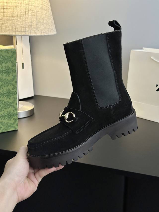 / 25Ss秋冬新款古驰马衔扣短靴7寸 以品牌标志性元素焕新诠释经典廊形。马衔扣细节增添雅致风范,透过当代视觉致敬品牌马术传承原版开模金属五金扣 鞋面材质:原版牛京