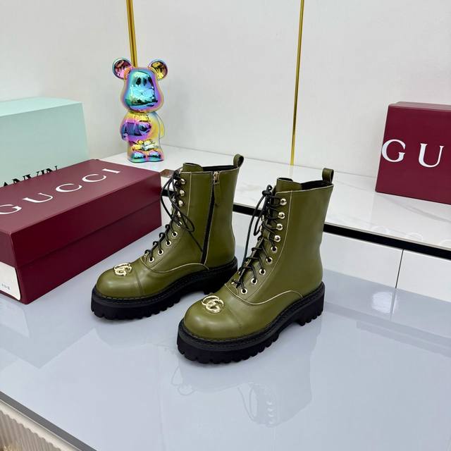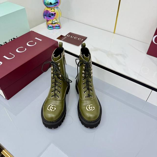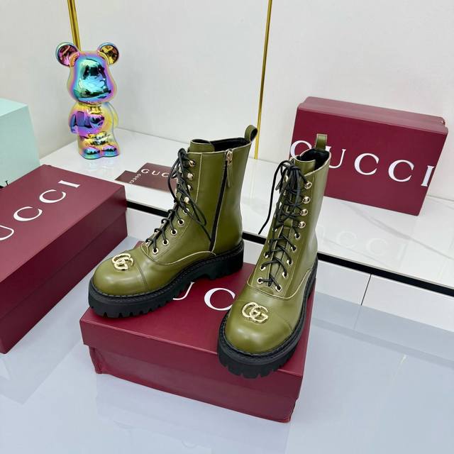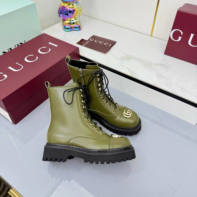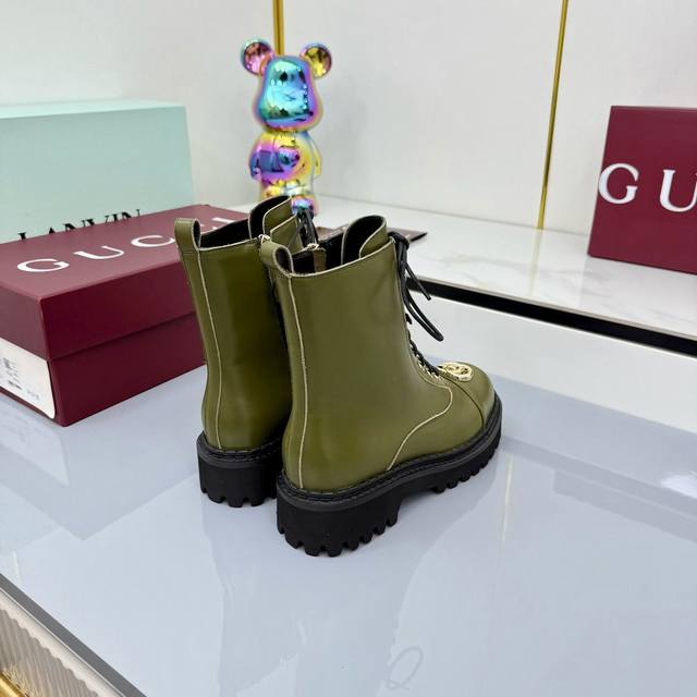 2660新版古驰Gucci百搭绑带马丁靴 跟高:5Cm 面料:头层牛皮 内里 垫脚:羊皮里。 大底是发泡大底材质 颜色:黑色 码数:35-41