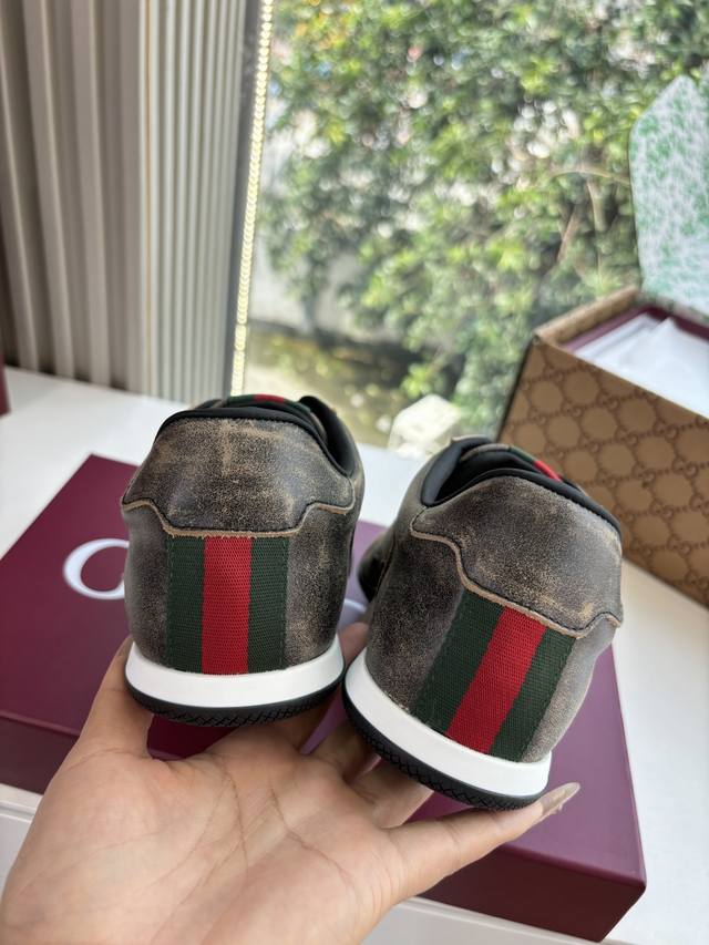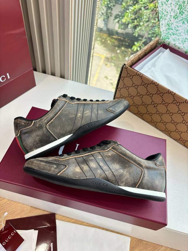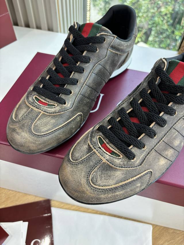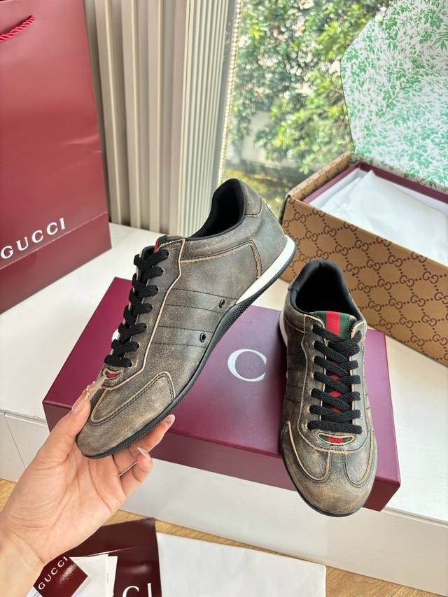 G311所见即所得Gucci新款德迅鞋情侣系列带着自己的薄底鞋来了Gucci正式发布全新“Guccishift”运动鞋系列。该系列从品牌深厚的马术传统汲取灵感,以经典Web 条纹为核心,融合多元材质与现代设计,展现品牌标志性的传承与创新。 轻盈舒适的穿着感搭配极简廓形,营造出利落而摩登的气质。麂皮、帆布及科技面料的丰富组合,与大胆的配色与设计相得益彰,一同展现更具个性的优雅与活力。 面料:进口牛皮 内里:皮里 鞋底:35-45 45定制不退不换 39.40备注男女