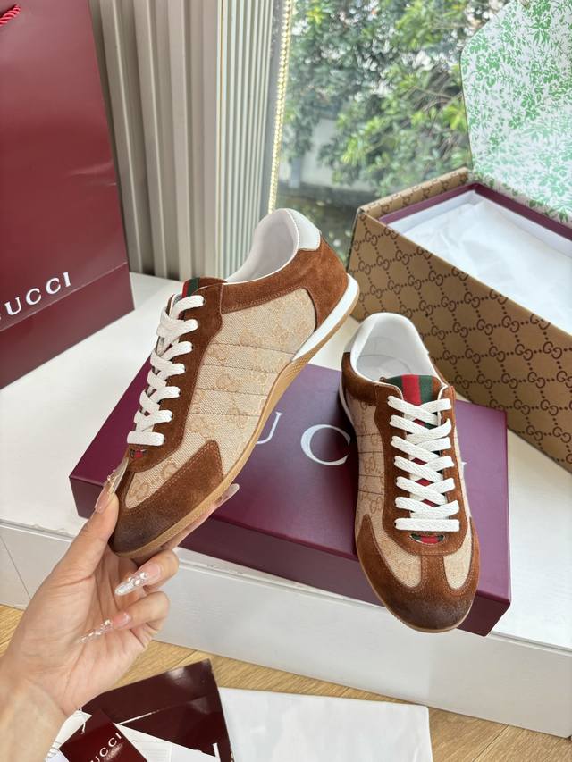 G311所见即所得Gucci新款德迅鞋情侣系列带着自己的薄底鞋来了Gucci正式发布全新“Guccishift”运动鞋系列。该系列从品牌深厚的马术传统汲取灵感,以经典Web 条纹为核心,融合多元材质与现代设计,展现品牌标志性的传承与创新。 轻盈舒适的穿着感搭配极简廓形,营造出利落而摩登的气质。麂皮、帆布及科技面料的丰富组合,与大胆的配色与设计相得益彰,一同展现更具个性的优雅与活力。 面料:进口磨砂 内里:皮里 鞋底:35-45 45定制不退不换 39.40备注男女