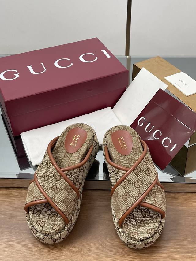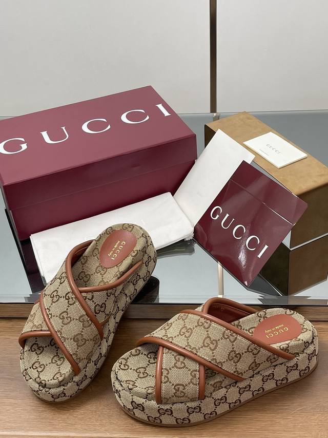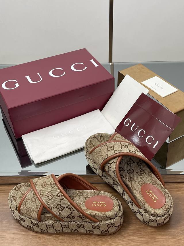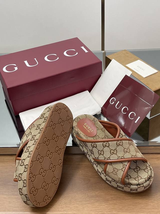 Gg字母新底 古奇最新春夏双Gg刺绣老花系列新款 厚底凉鞋 中跟交叉带凉拖鞋这款凉鞋由经典Gg刺绣老花帆布工艺制作,交叉绑带搭配橡胶鞋底造型,打造出色的鞋款设计。Gg标志于20世纪70年代开始使用,由最初起源于20世纪30年代的Gucci钻石菱格纹设计演化而来,自面世之后,便成为标志性的Gucci传统经典元素。面料:经典Gg刺绣帆布内里:水染牛皮里尺码:35-43 标准码,414243 定做不退不换包装:全套原版高端包装 大底:原版开模进口G G字母橡胶组合鞋底 意大利创作 正品开发!材质,工艺与原版一致