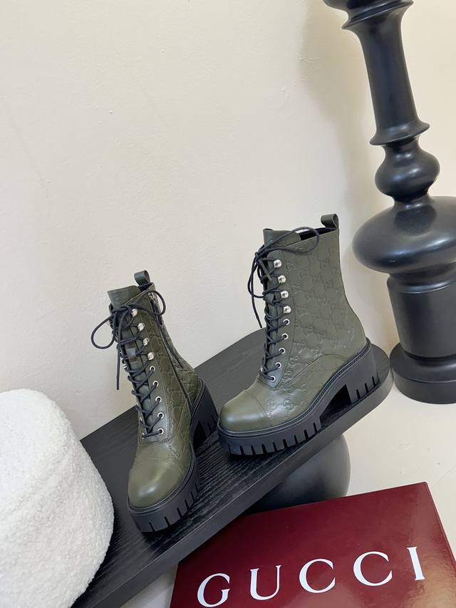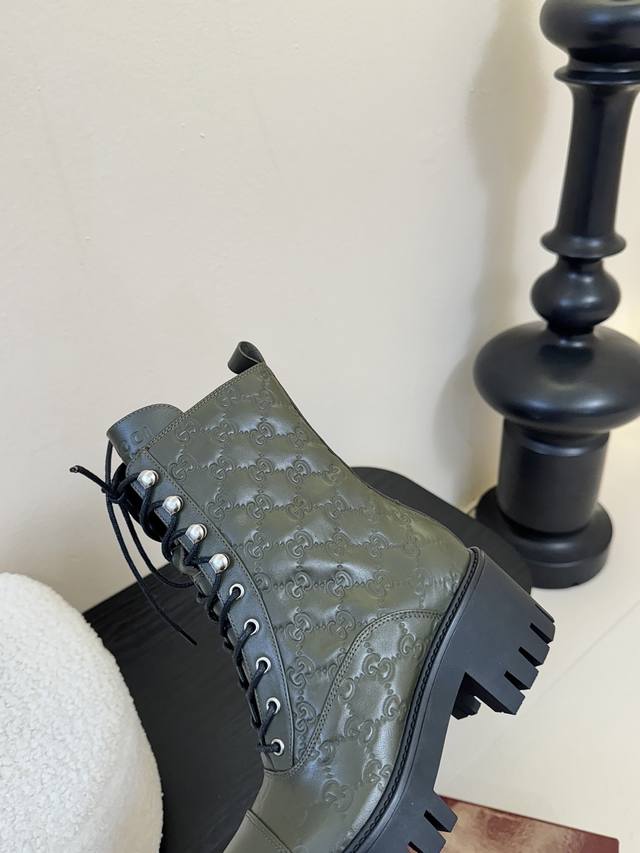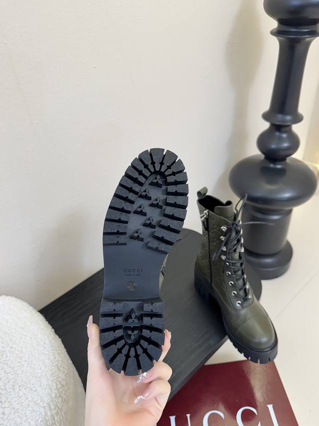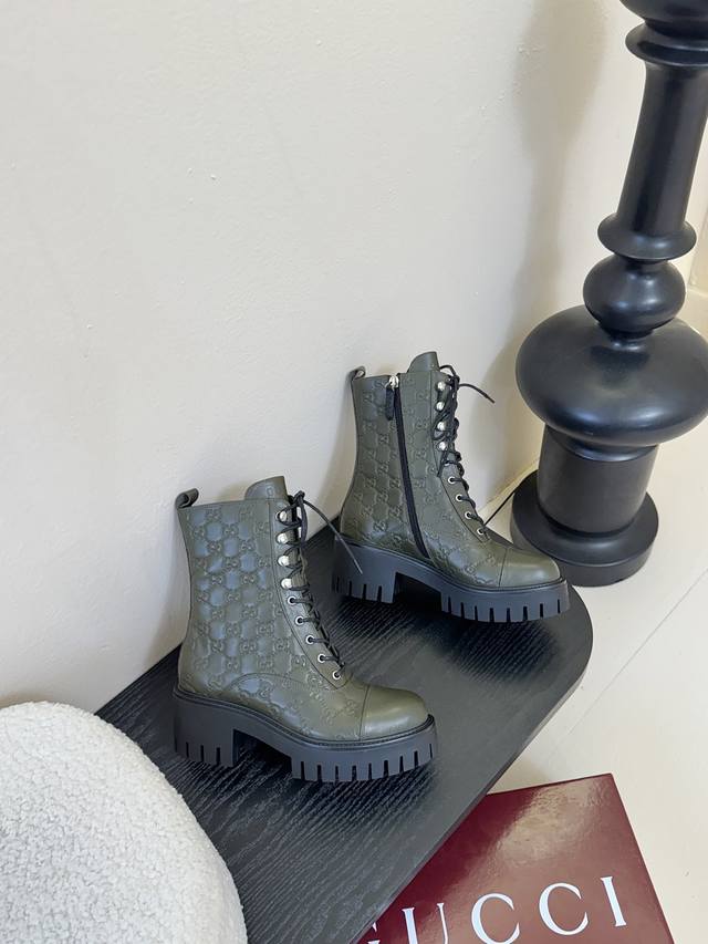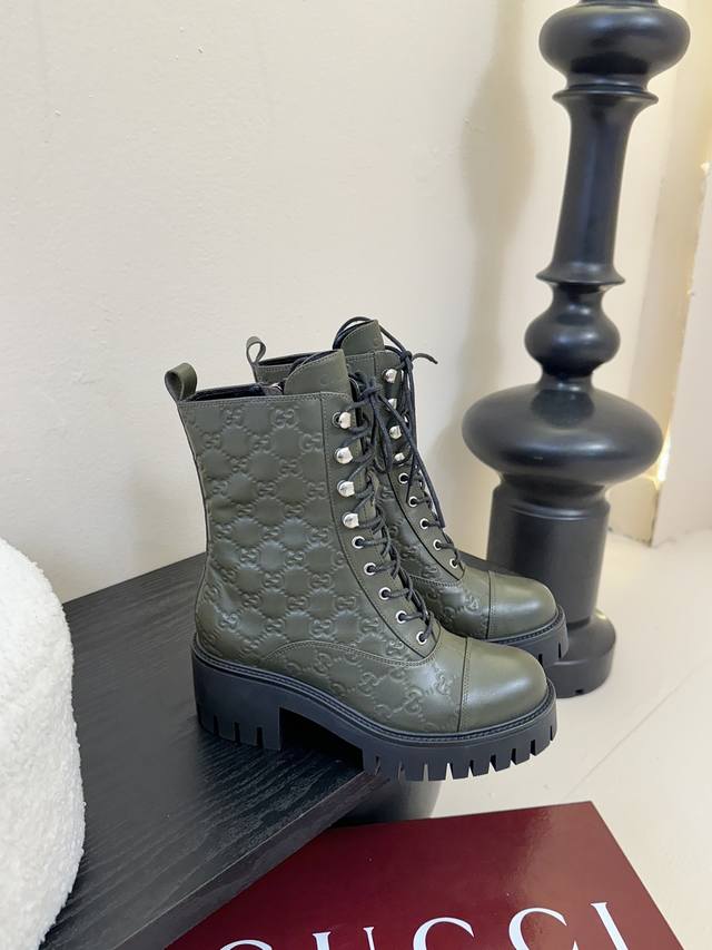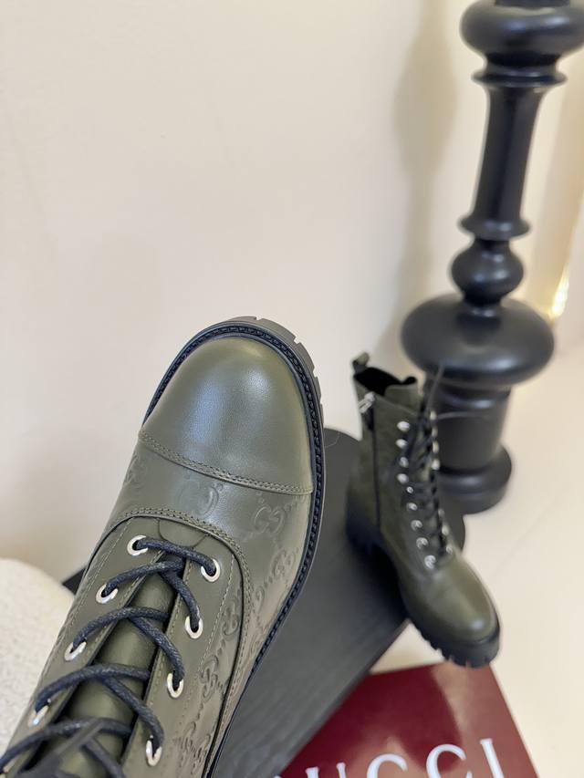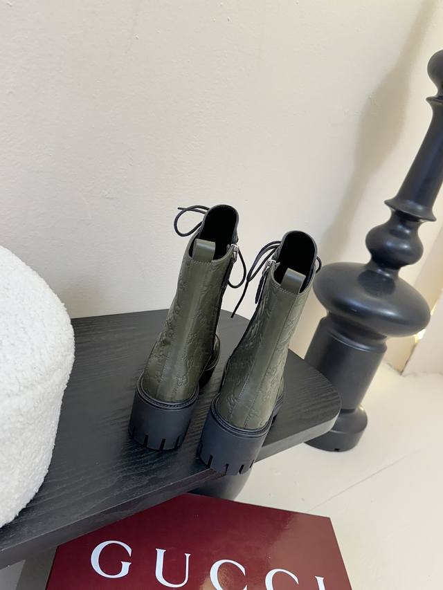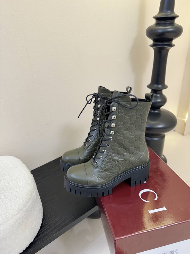 Gucc*秋冬新品经典 时髦极小简圆头搭配马衔扣设计 潇洒百搭而且脚感很稳 而且在搭配上不用多做思考 连衣裙和小短裙都非常好看。 鞋面采用原版定制 靴筒牛皮压花