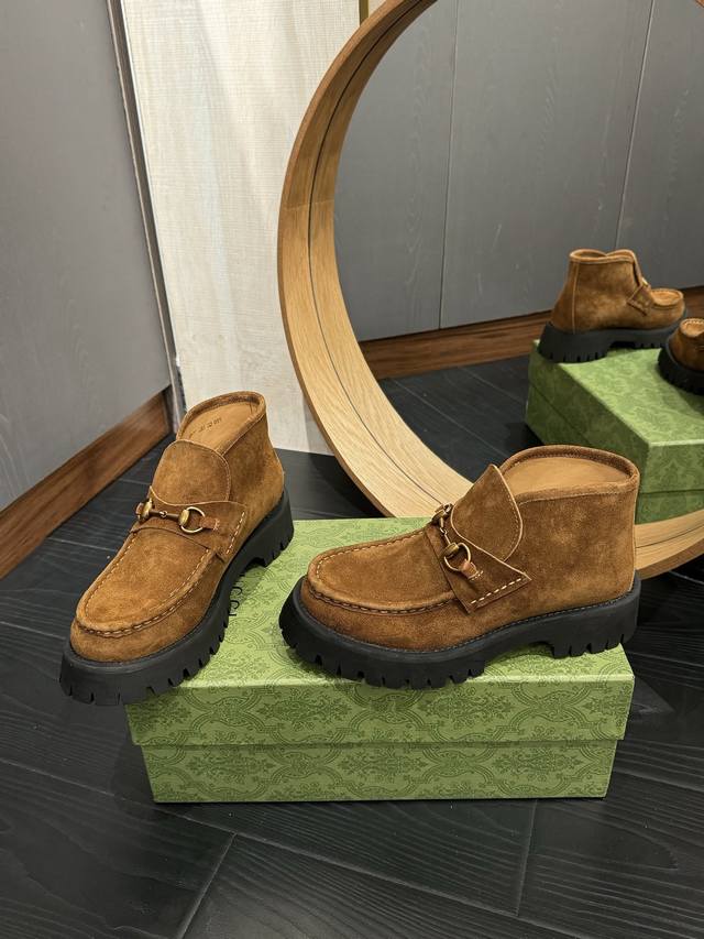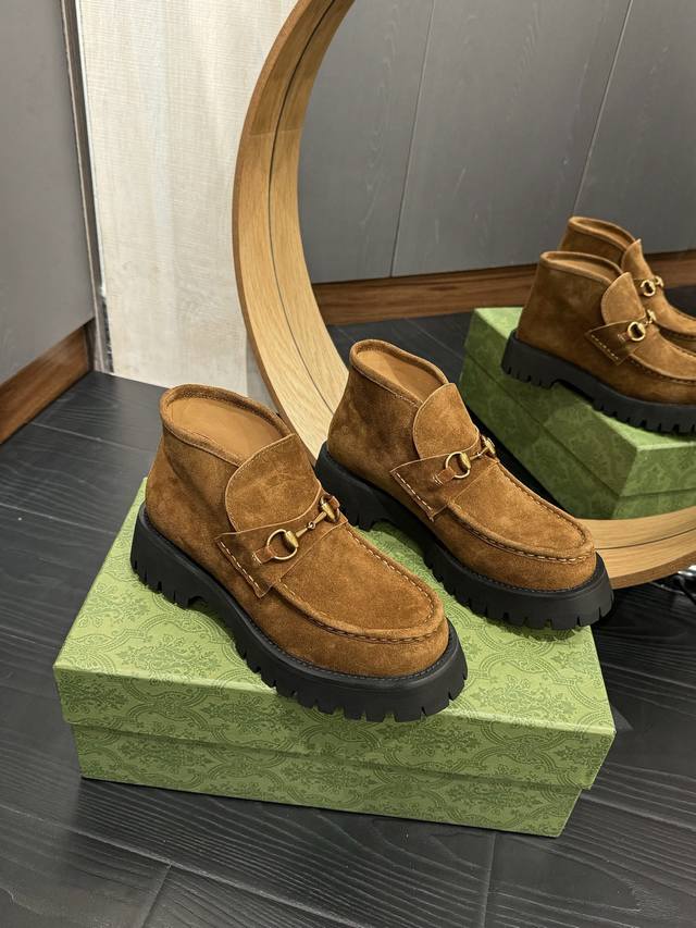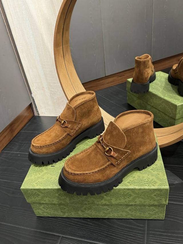 Gucc*经典款马衔扣短靴!经典百搭,辨别度高!原版套楦,顶级品质! 男款+20 鞋面:顶级进口开边珠牛皮及顶级高丝光牛猄 内里:牛皮里 大底:原版开模定制防滑