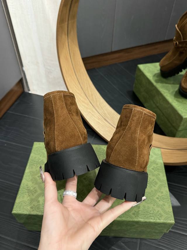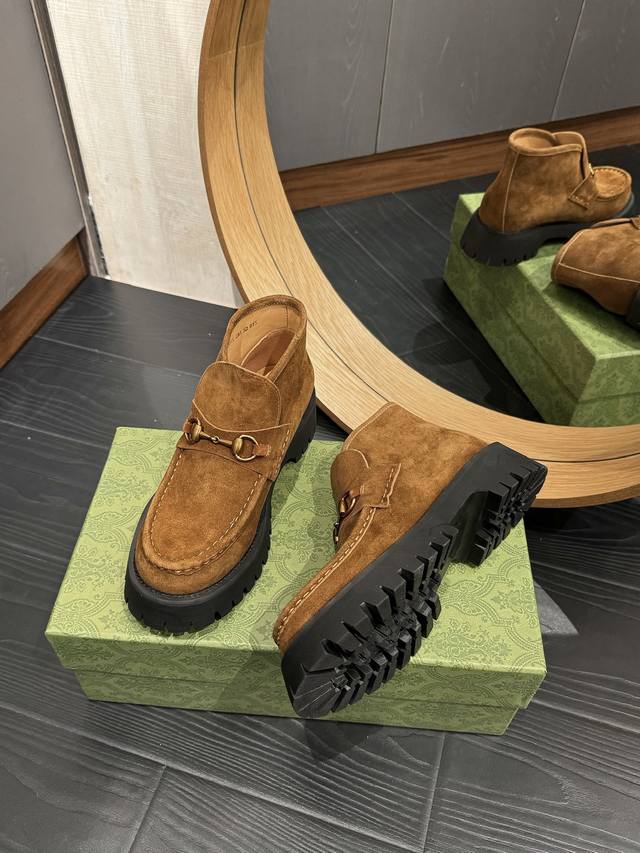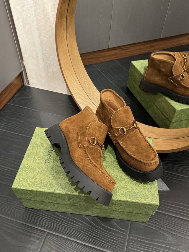 Gucc*经典款马衔扣短靴!经典百搭,辨别度高!原版套楦,顶级品质! 男款+20 鞋面:顶级进口开边珠牛皮及顶级高丝光牛猄 内里:牛皮里 大底:原版开模定制防滑大底 码数:35-39 40.41.42定做不退不换 男款39-44 45定做