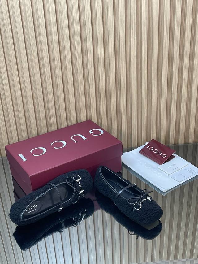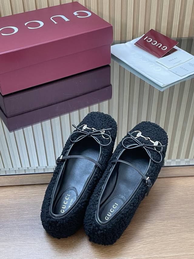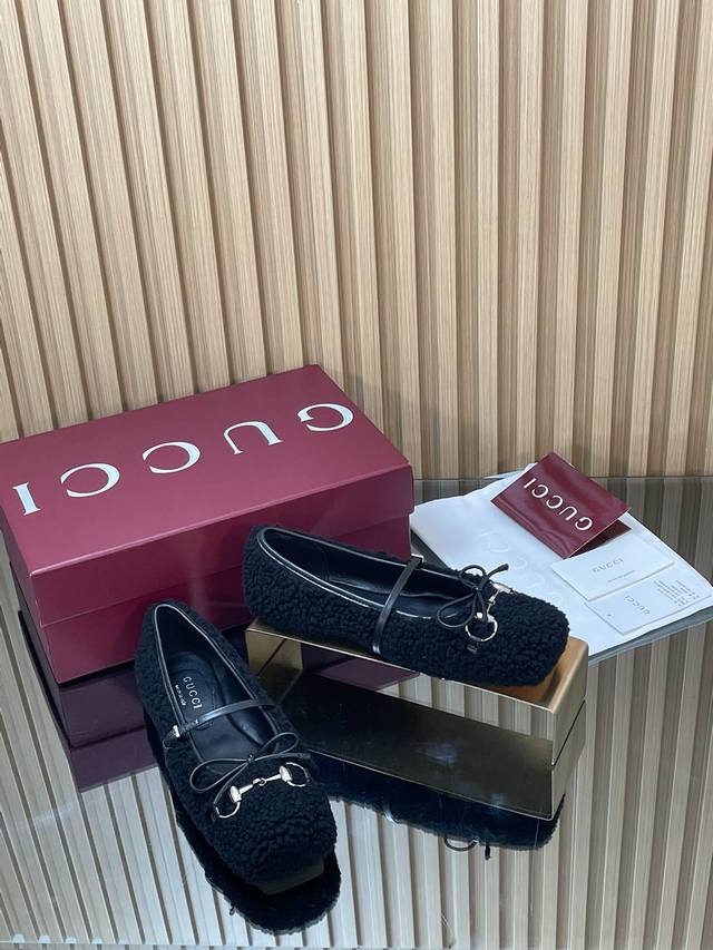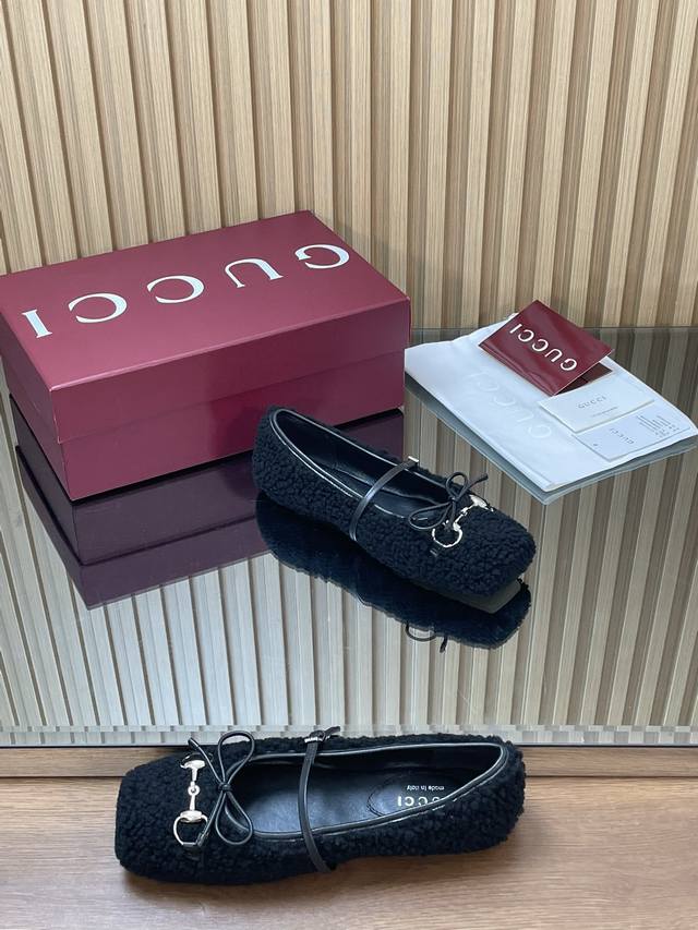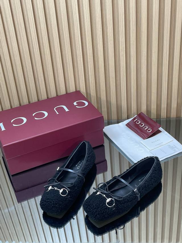 Gucc高端精品 2025早秋系列新品平底羊毛芭蕾鞋 美利奴羊毛单鞋马衔扣新款小方头毛毛鞋经典精致优雅俏皮时髦平底鞋高质感甜美学院风便鞋 原汁原味原单品质每个细