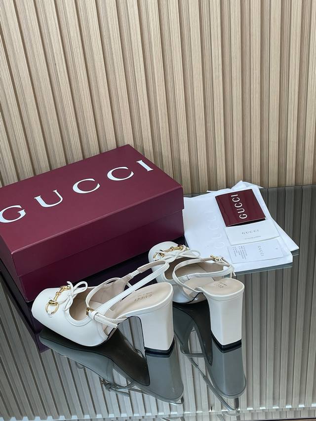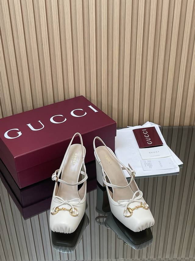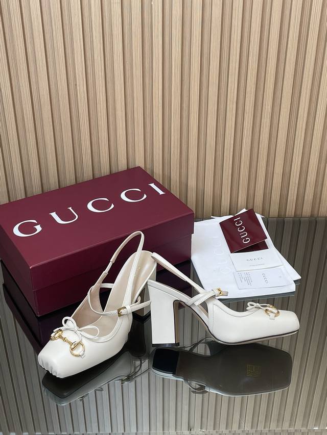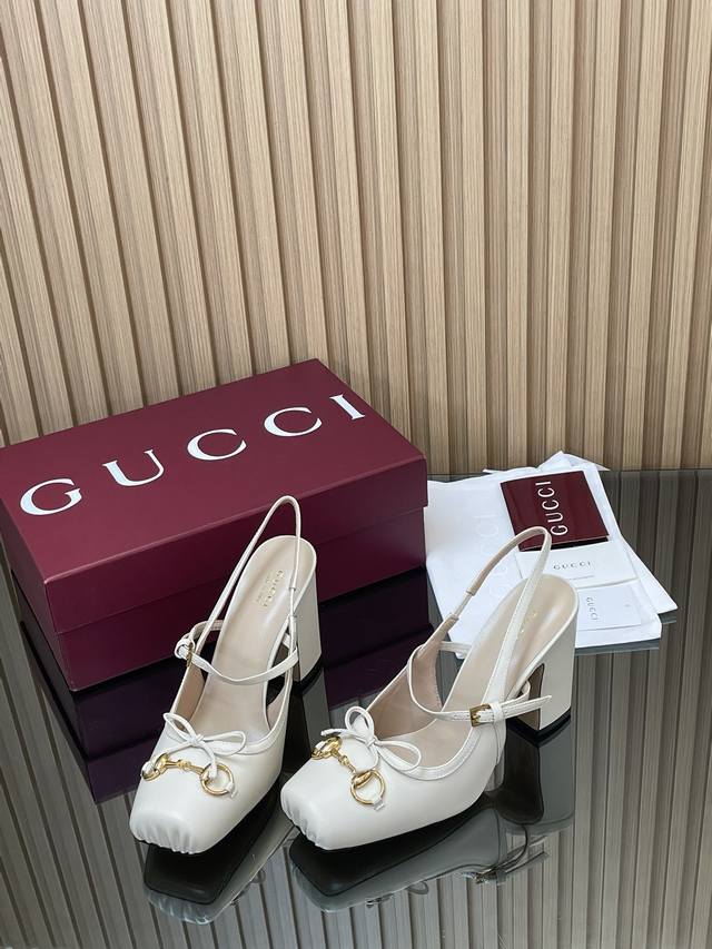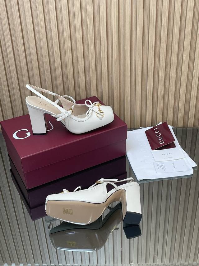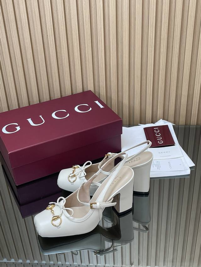 Gucc高端精品 2025海外早秋Gucci Horsebit系列新品高跟方形方头新式芭蕾鞋 马衔扣新款小方头穆勒鞋经典精致优雅蝴蝶结浅口鞋高质感后系带后空鞋 原汁原味原单品质每个细节皆经过精心细致打造,可与Zg对比如一,无二品质! 2025秋冬系列,这款马衔扣后系带浅口鞋选用方形收口鞋头设计,搭配雅致的蝴蝶结细节,致敬传统芭蕾舞鞋型,这款单品以皮革匠心打造,缀饰浅金色掉配件,Sacchetto构造确保出色的舒适感 面料:原版定制进口羊皮 五金:东莞大厂开模马衔扣 内里/垫脚:高端定制羊皮里 跟高:9.5