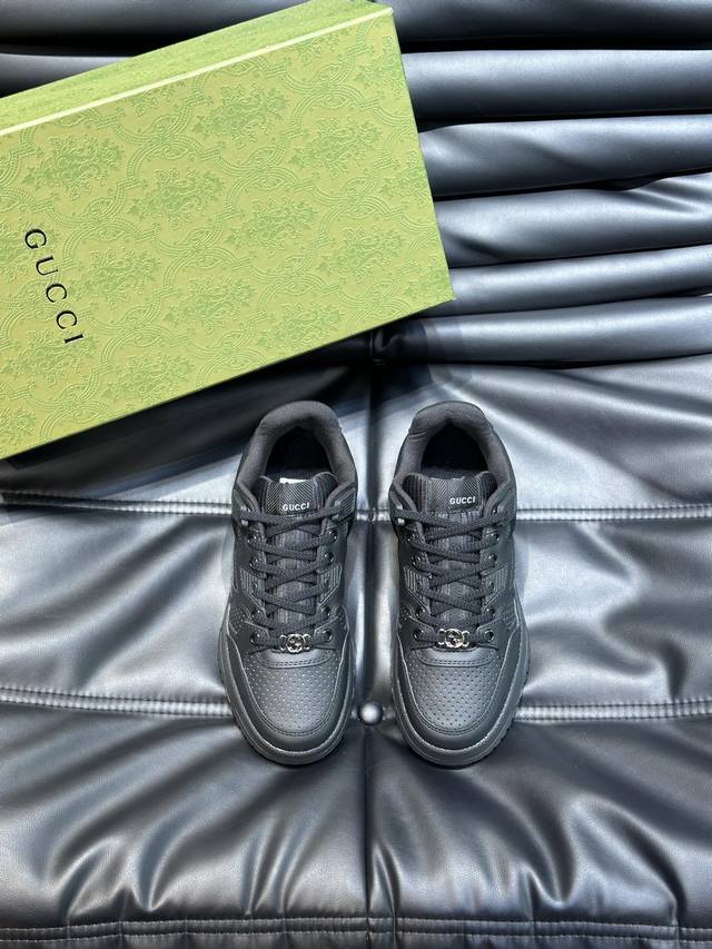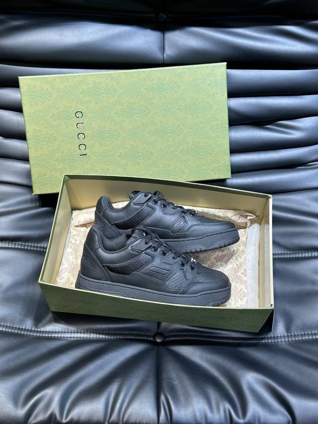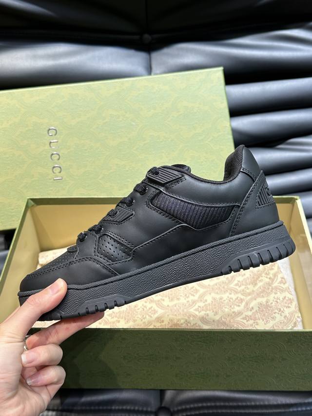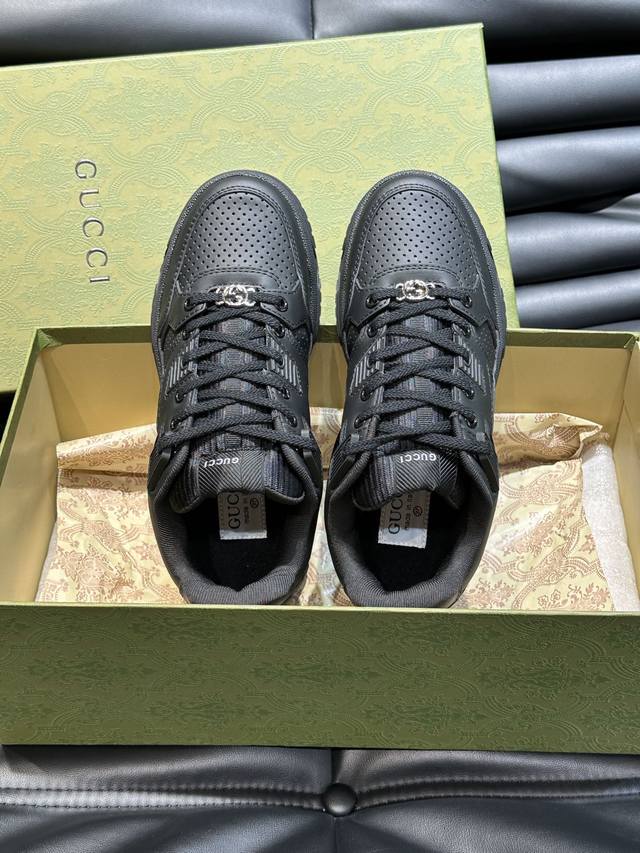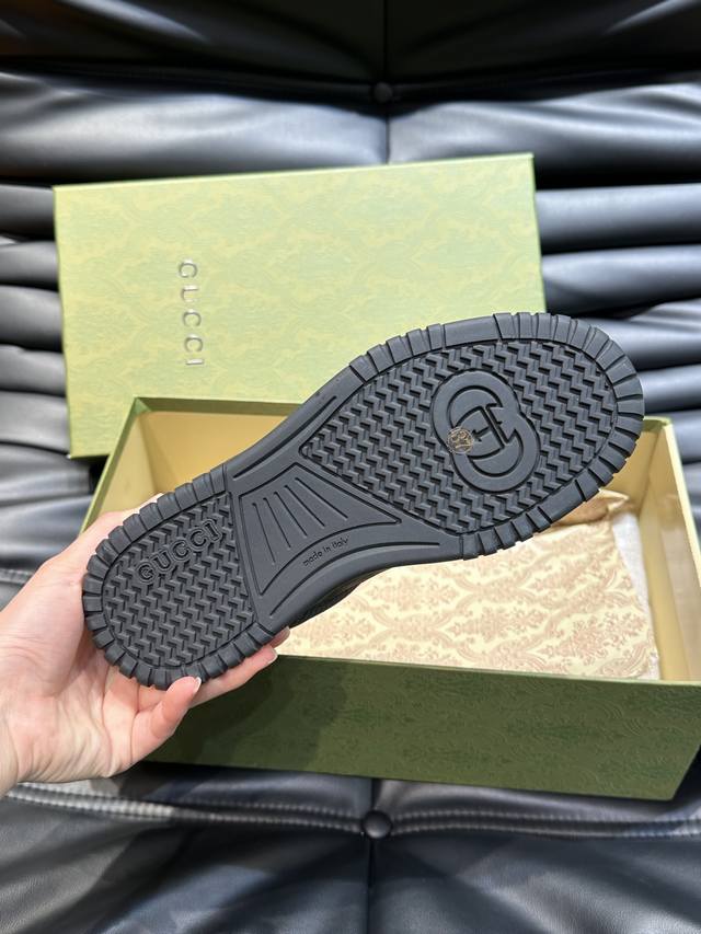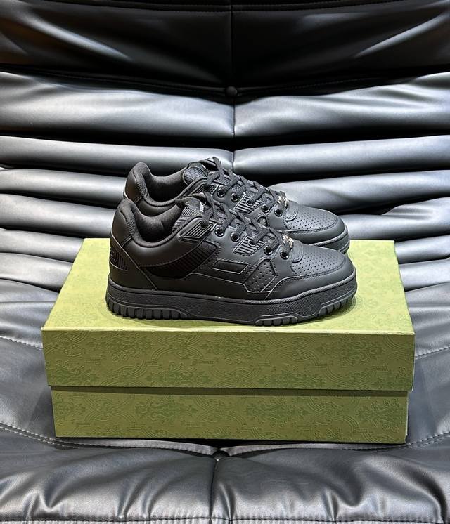 Gucc* 新款情侣做旧效果运动鞋,这款低帮运动鞋采用篮球风格廓形设计,巧妙融入镂空拼片和做旧效果,尽显别样匠心。匠心融蕴互扣式双G造型配件和Gucci字样等品