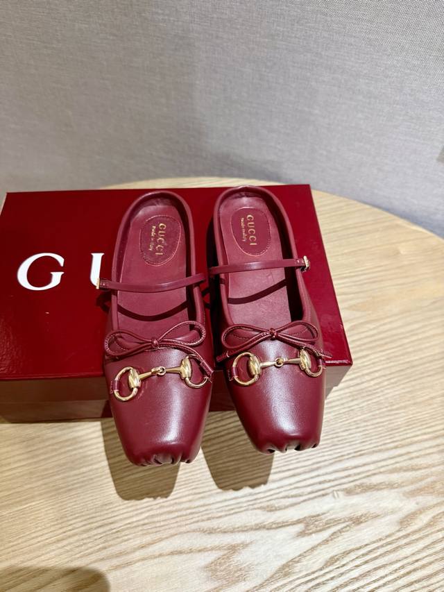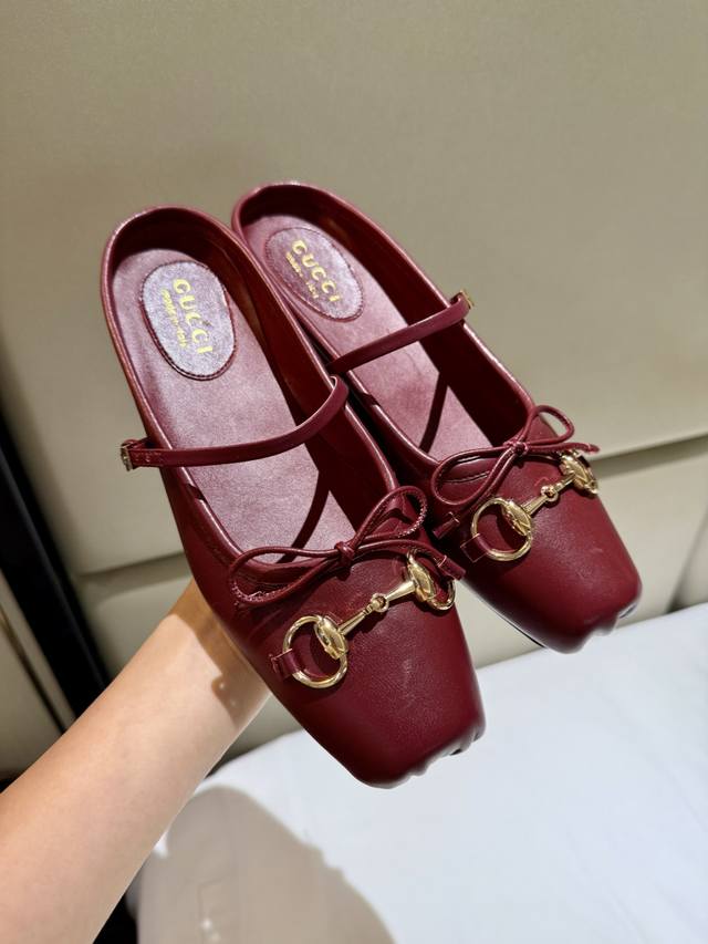 Gucc 2025早秋25系列新品平底芭蕾鞋马衔扣新款小方头拖鞋,鞋头方形设计搭配雅致的蝴蝶结细节,经典精致优雅俏皮时髦平底鞋,凉拖,打造出色的穿着体验。 面料