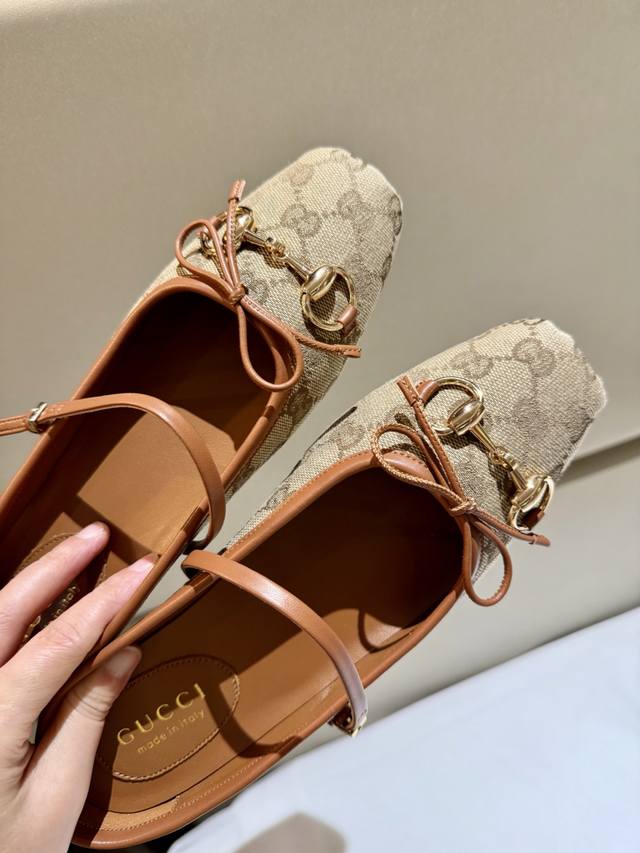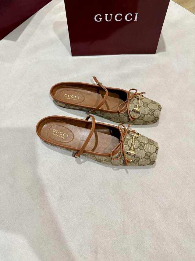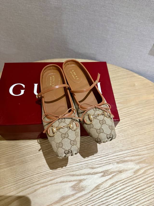 / Gucc 2025早秋25系列新品平底芭蕾鞋马衔扣新款小方头拖鞋,鞋头方形设计搭配雅致的蝴蝶结细节,经典精致优雅俏皮时髦平底鞋,凉拖,打造出色的穿着体验。 面料