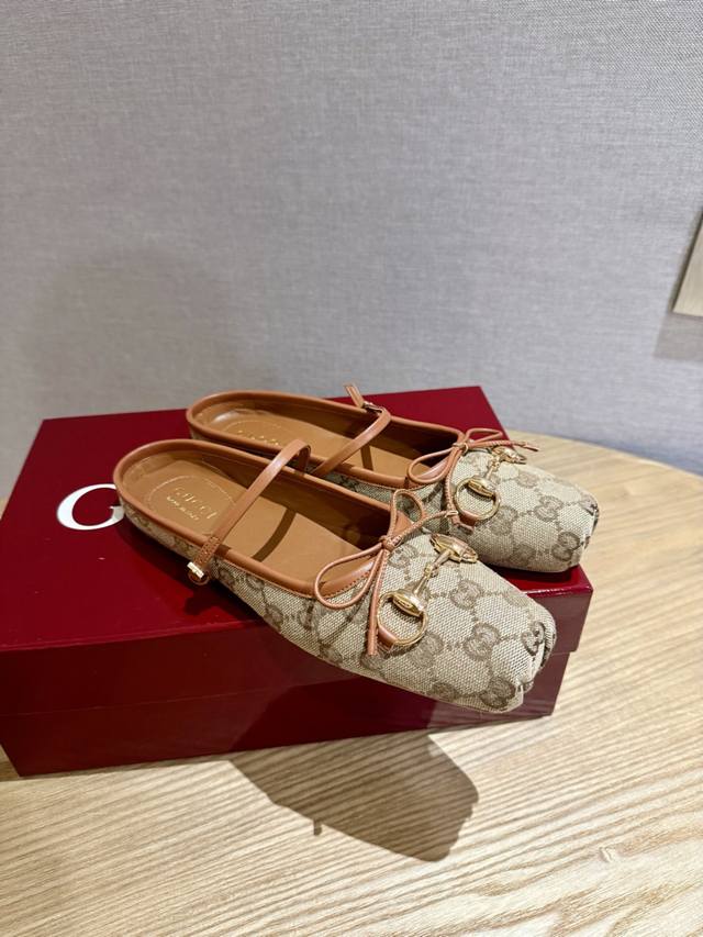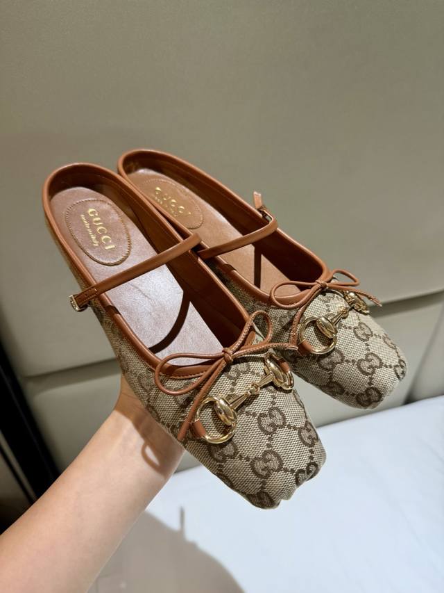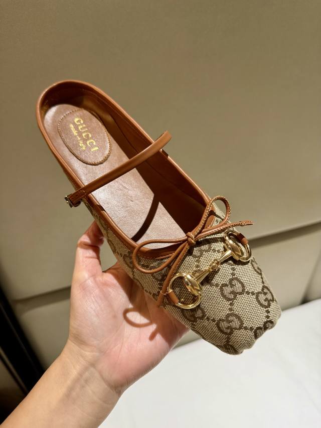 Gucc 2025早秋25系列新品平底芭蕾鞋马衔扣新款小方头拖鞋,鞋头方形设计搭配雅致的蝴蝶结细节,经典精致优雅俏皮时髦平底鞋,凉拖,打造出色的穿着体验。 面料