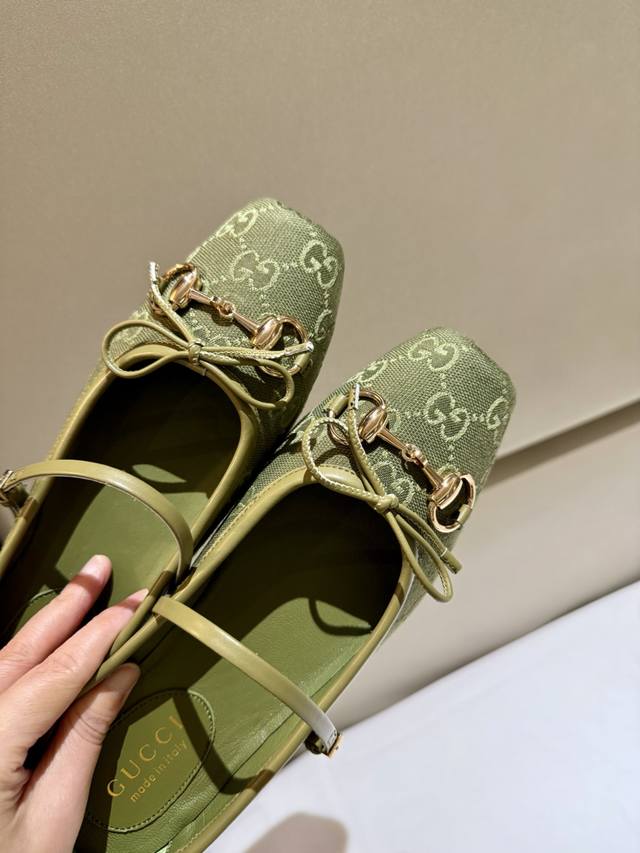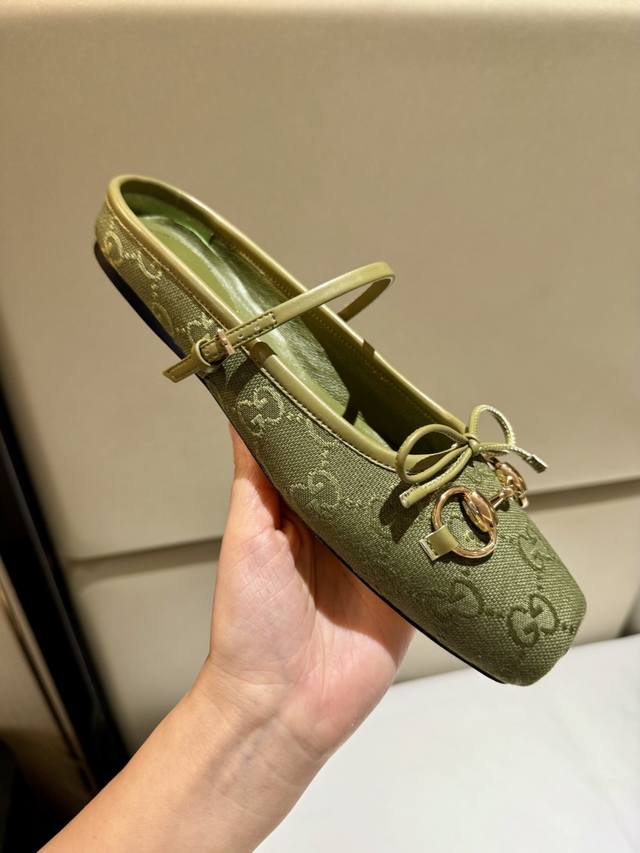 / Gucc 2025早秋25系列新品平底芭蕾鞋马衔扣新款小方头拖鞋,鞋头方形设计搭配雅致的蝴蝶结细节,经典精致优雅俏皮时髦平底鞋,凉拖,打造出色的穿着体验。 面料