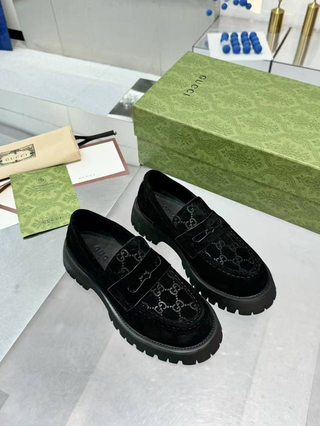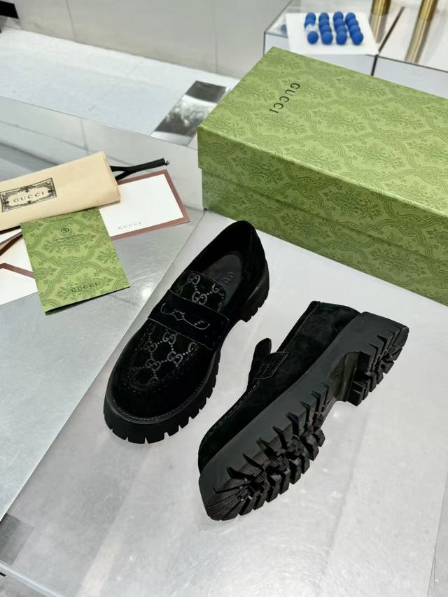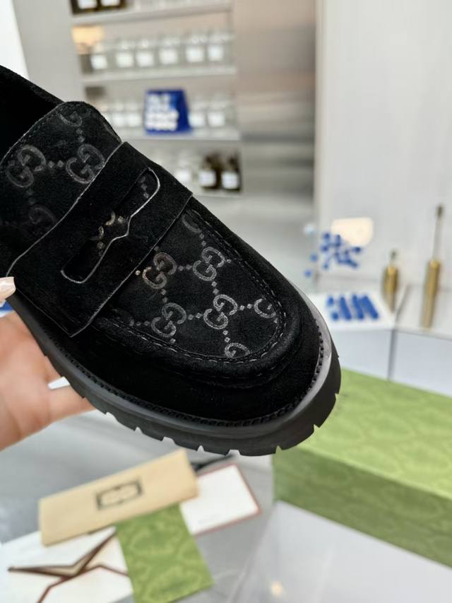 / Gucci乐福鞋 典藏图案继续在Gucci全新系列中大放异彩。全新系列匠心呈献,彰显品牌马术传承。这款采用皮革制作,搭配橡胶沟纹鞋底。 面料:进口牛京压花 码数