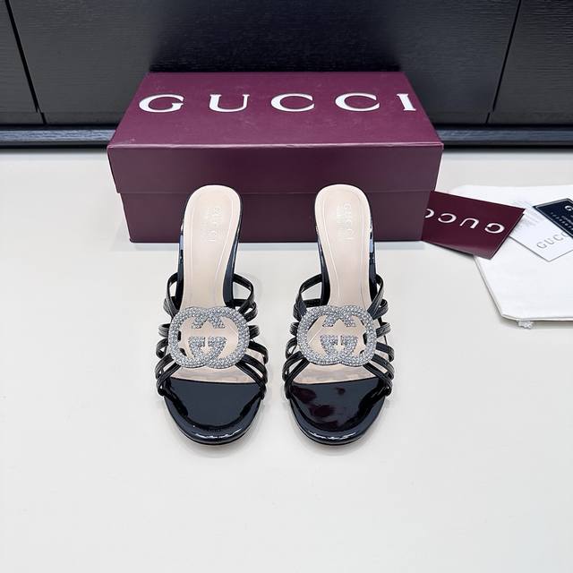 / Gucci古奇新款 双G水钻扣高跟拖鞋 水钻扣平底拖鞋 DDD G家的色彩暴击来了!酒红复古、银白闪耀、黑金冷艳,还有裸粉、香槟金等多色加持,水钻扣在鞋间Bli