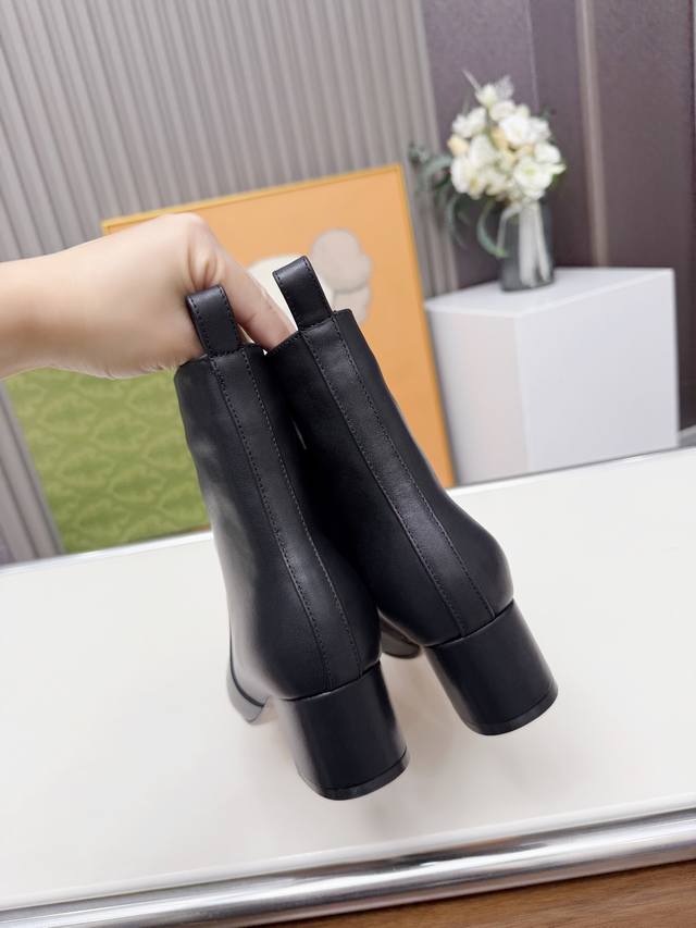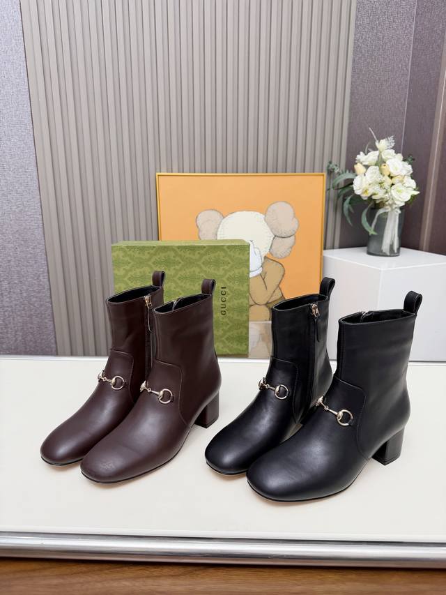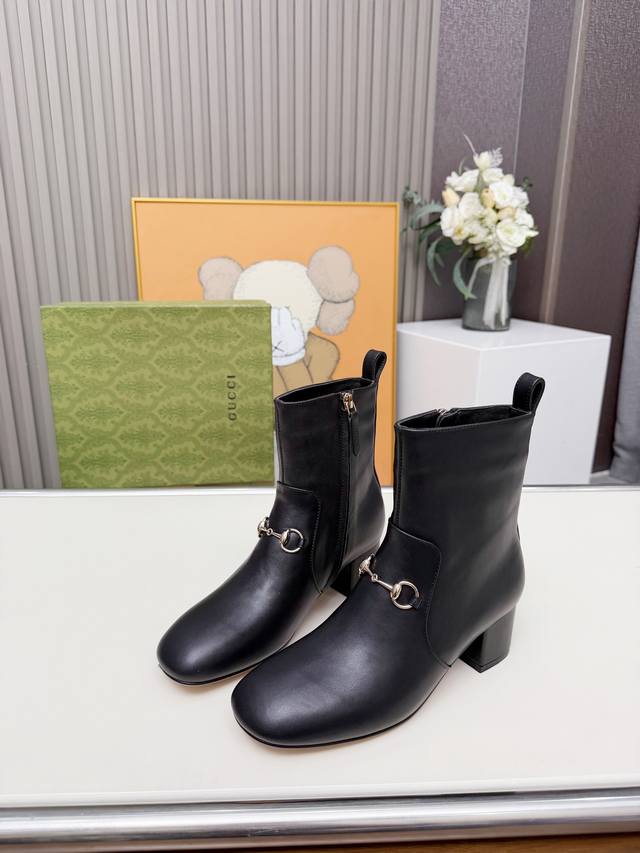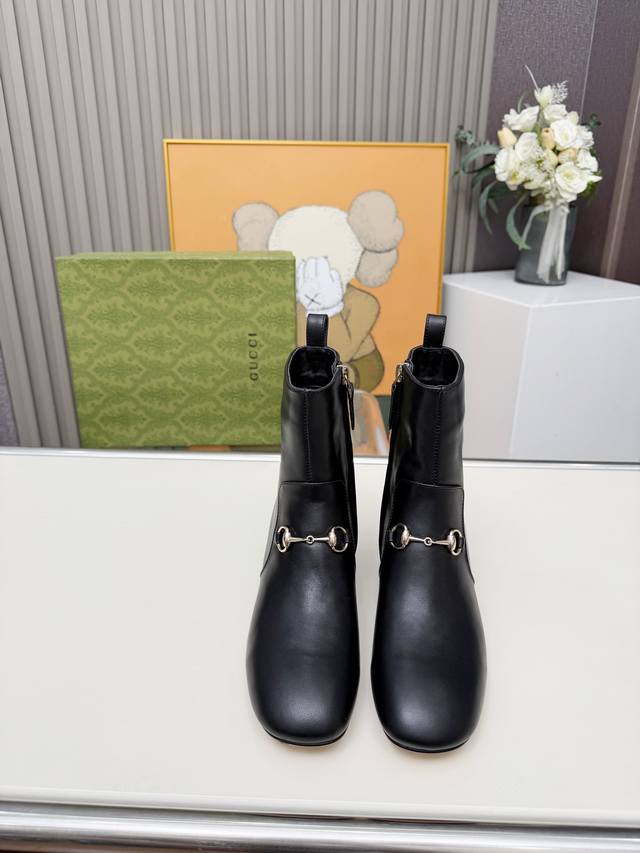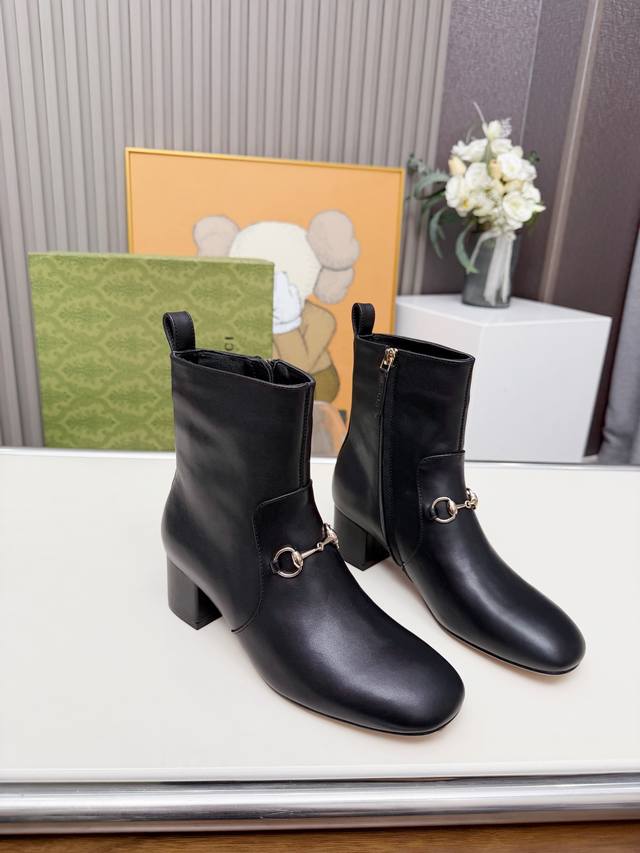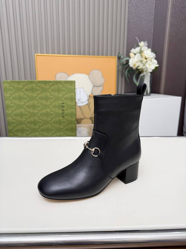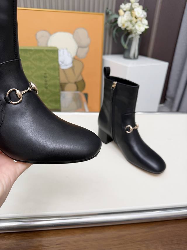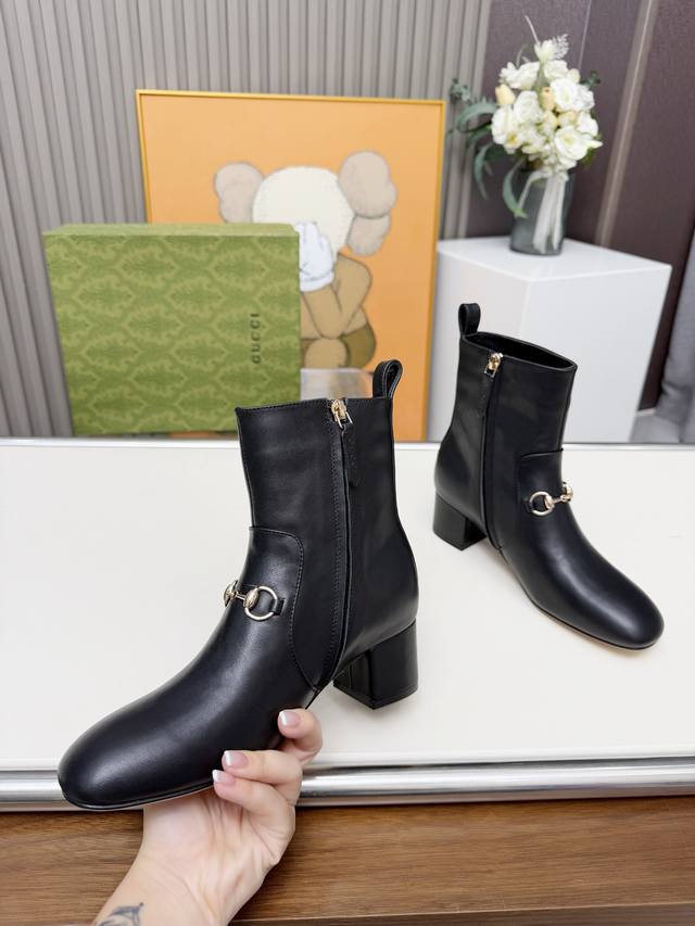 / Gucci古奇最新款短靴 原板鞋复制一比一精心制作。 原版跟五金扣开模, 面料釆用头层小牛皮和双G特殊材料两种供选。 内料:内里垫脚牛皮里 大底釆用非常轻便切耐